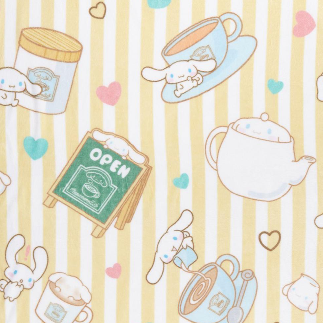 Welcome to Cinnamoroll Café! Curl yourself up in this cozy throw blanket, featuring your favorite curly-tailed pup! With a fun all-over print and soft texture, it’s the perfect companion for a binge-worthy TV or movie night!