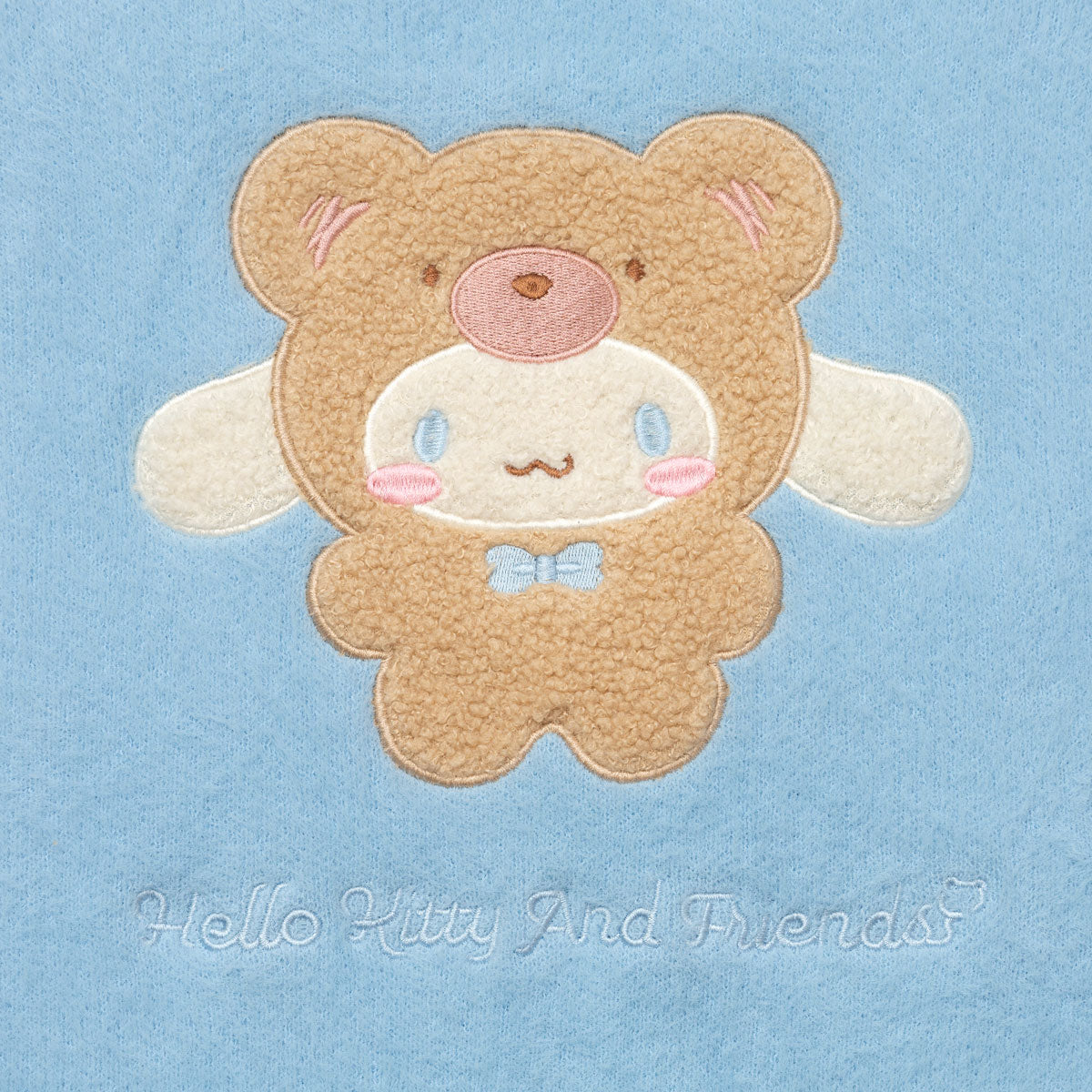 Stay stylishly snug with the Cinnamoroll Cozy Kuma JapanLA Cardigan. This soft and fuzzy cardigan features dainty text embroidery, embroidered applique of Cinnamoroll in a bear outfit in the front pocket and on the back, and satin bows along both sleeves. With your cozy companion by your side, this cardigan is perfect for lounging on lazy days or keeping warm on chilly outings!