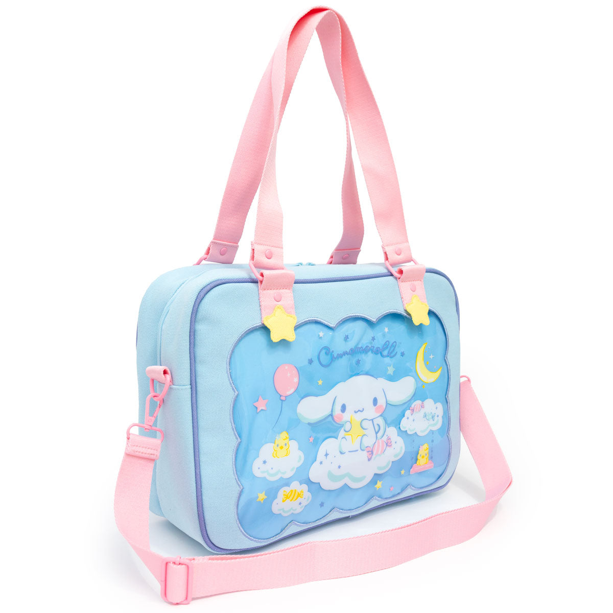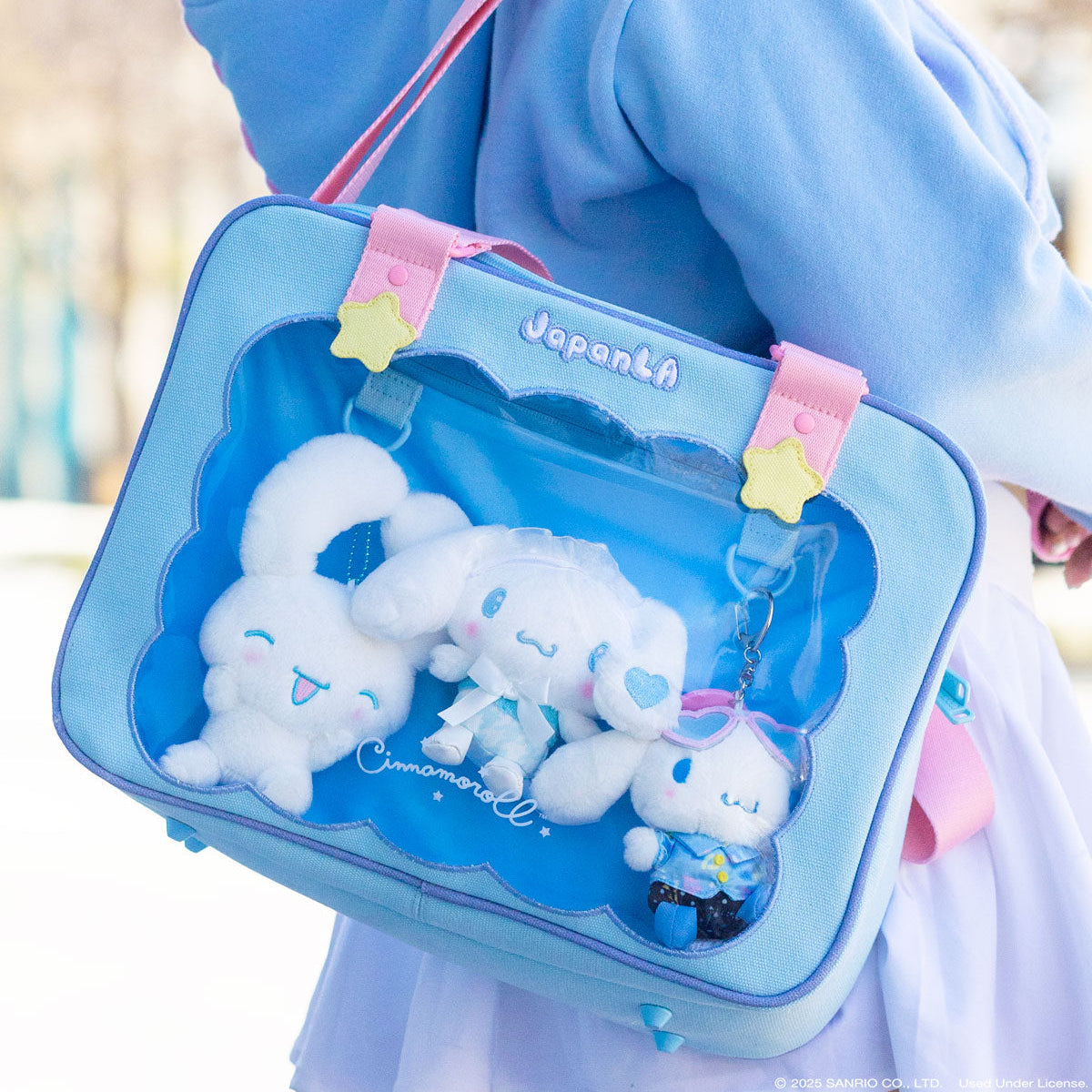 A special collaboration item from JapanLA and Sanrio! The Cinnamoroll x JapanLA Ita Duffle Bag is the ultimate accessory for any kawaii collector! This double-sided ita bag is perfect for showcasing your favorite plushies, figures, and keychains in the clear display windows!