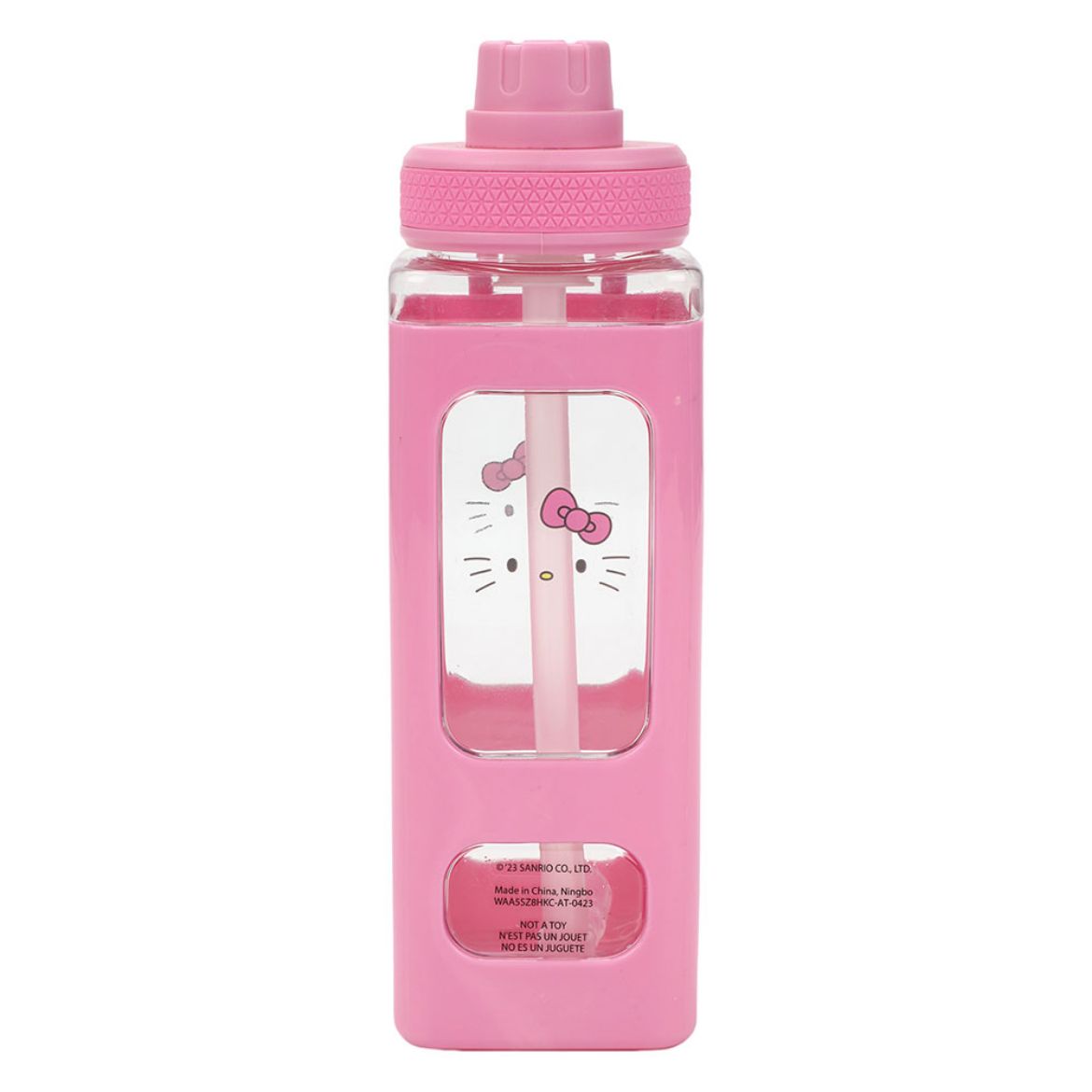 Stay hydrated with this adorable and unique Hello Kitty square-shaped water bottle! Sip with ease and know the non-slip grip will stay put during road trip drives and city commutes while spreading cuteness all over town!