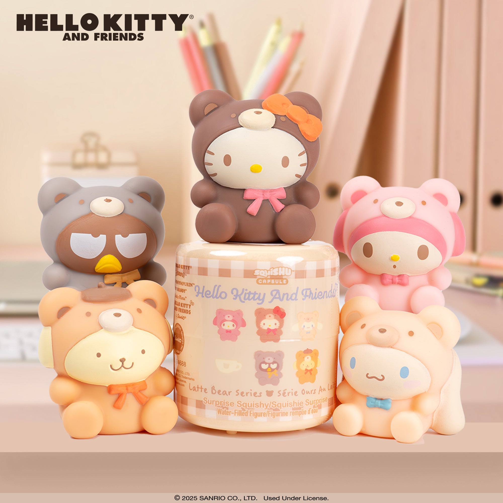 Enjoy a coffee break with Hello Kitty and Friends! Open these adorable capsules for a supercute surprise featuring Hello Kitty, My Melody, Cinnamoroll, Pompompurin, or Badtz-maru in an adorable teddy bear costume!