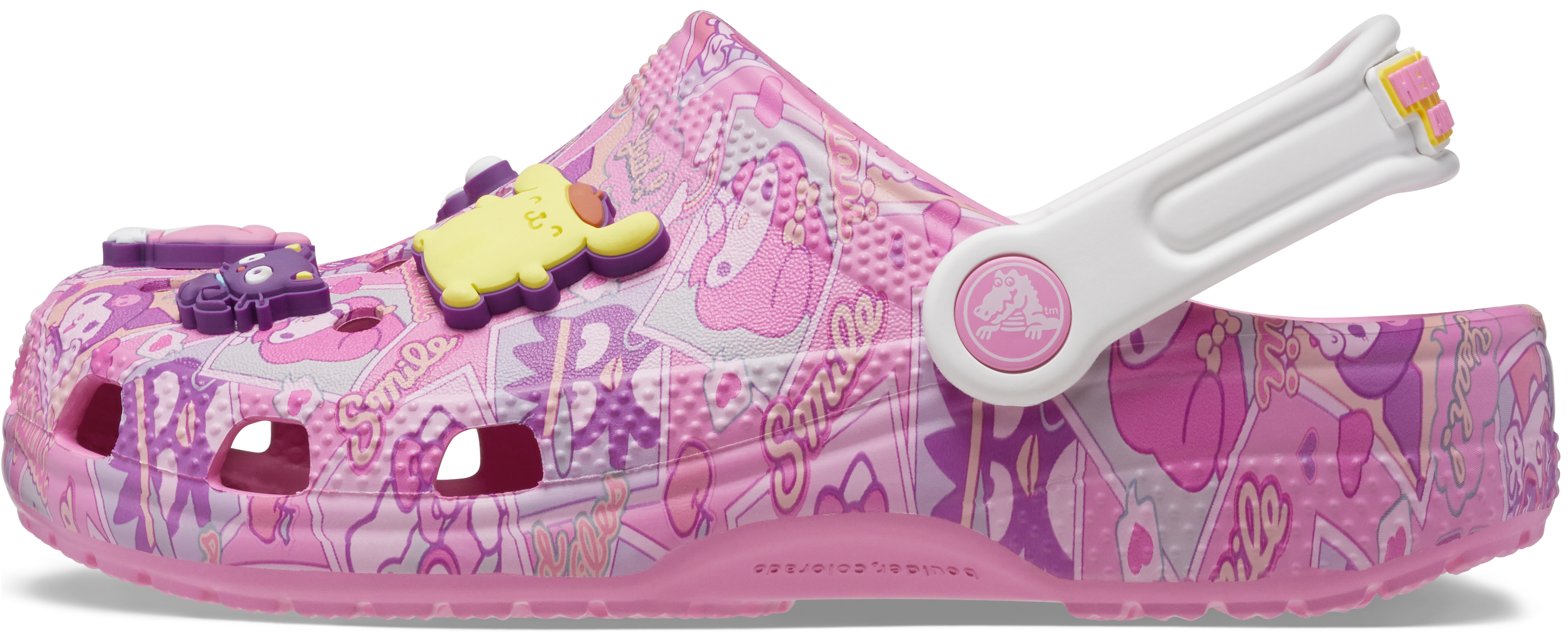 ♡ Includes a Hello Kitty and Friends logo Jibbitz™ charm on backstrap
