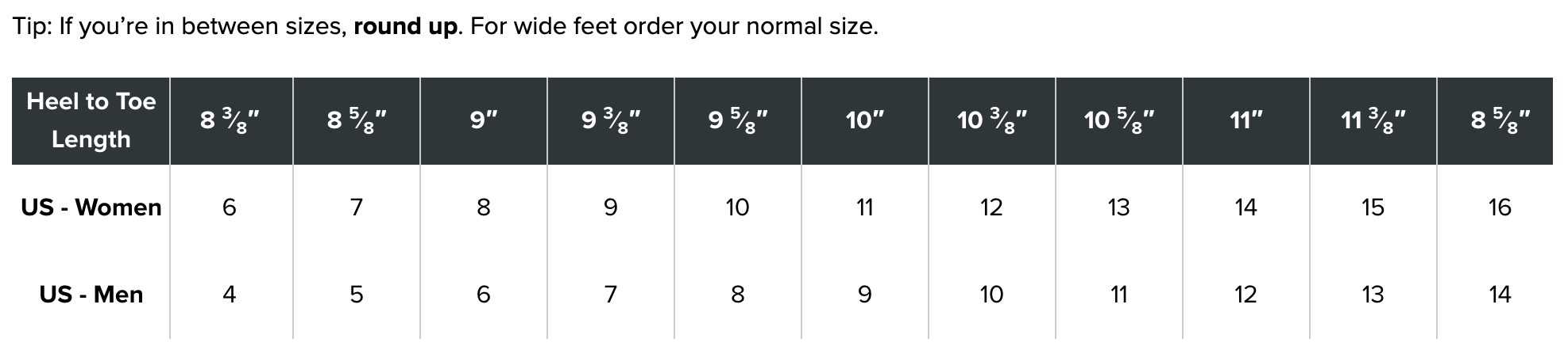 *Tip: Crocs come in whole sizes only. If you typically wear a half size, we recommend you order a size Up. Please see size chart included with our product photos for reference