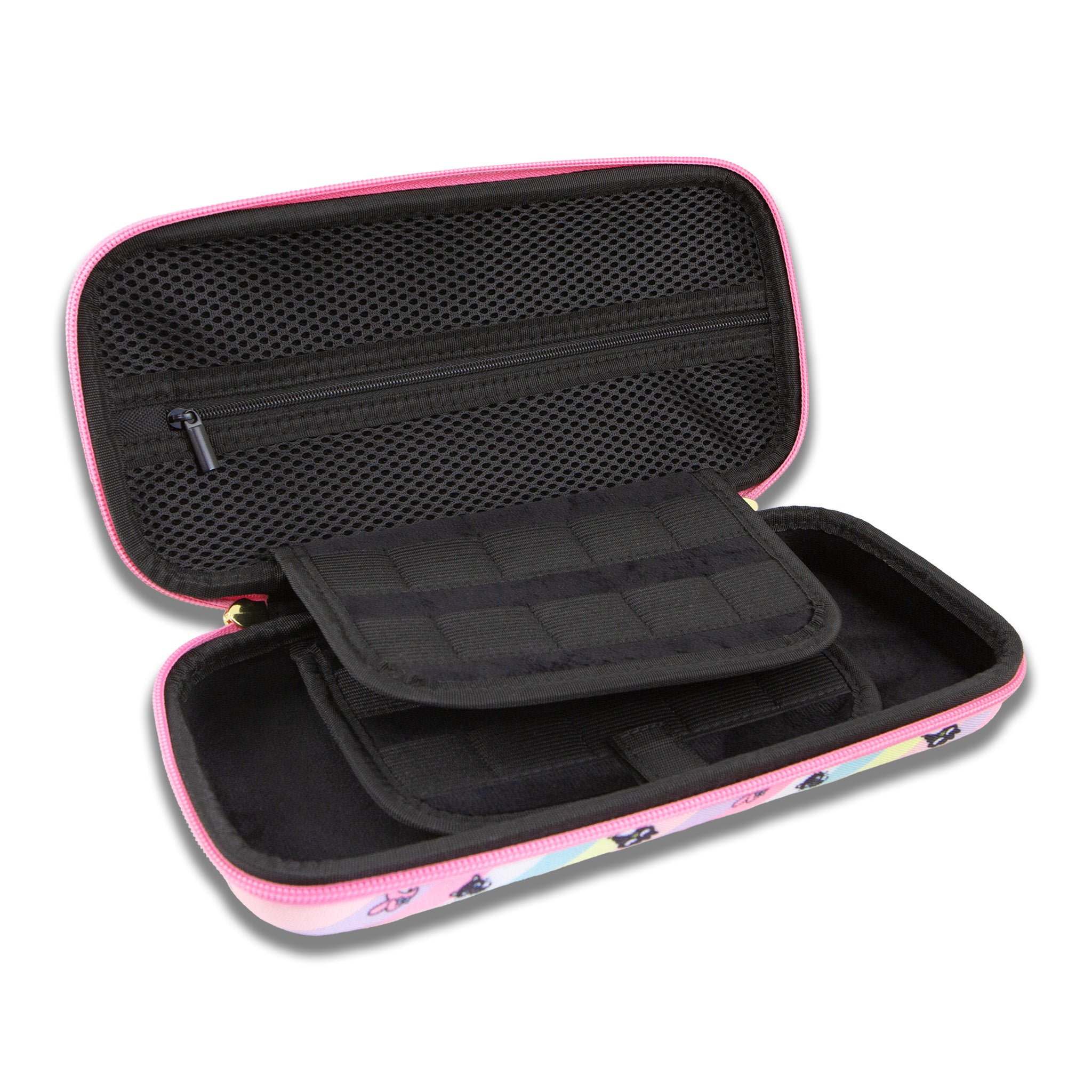 Sweeten up your gaming storage with the cuteness and friendship of Hello Kitty and Friends! This super cute, travel case for your portable gaming device features pastel grid artwork with Hello Kitty, LittleTwinStars, My Melody, Pochacco, Cinnamoroll, Tuxedosam, Keroppi, Badtz-maru, Chococat, Kuromi, and Pompompurin!