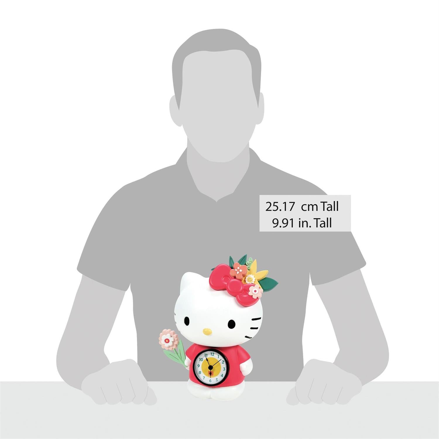 Keep time in Sanrio style with Hello Kitty! Holding a blossom in her hand, Hello Kitty wears flowers tucked behind her iconic pink bow and a clock face on her shirt. This curious and adorable desk clock helps you plan your day with a smile!