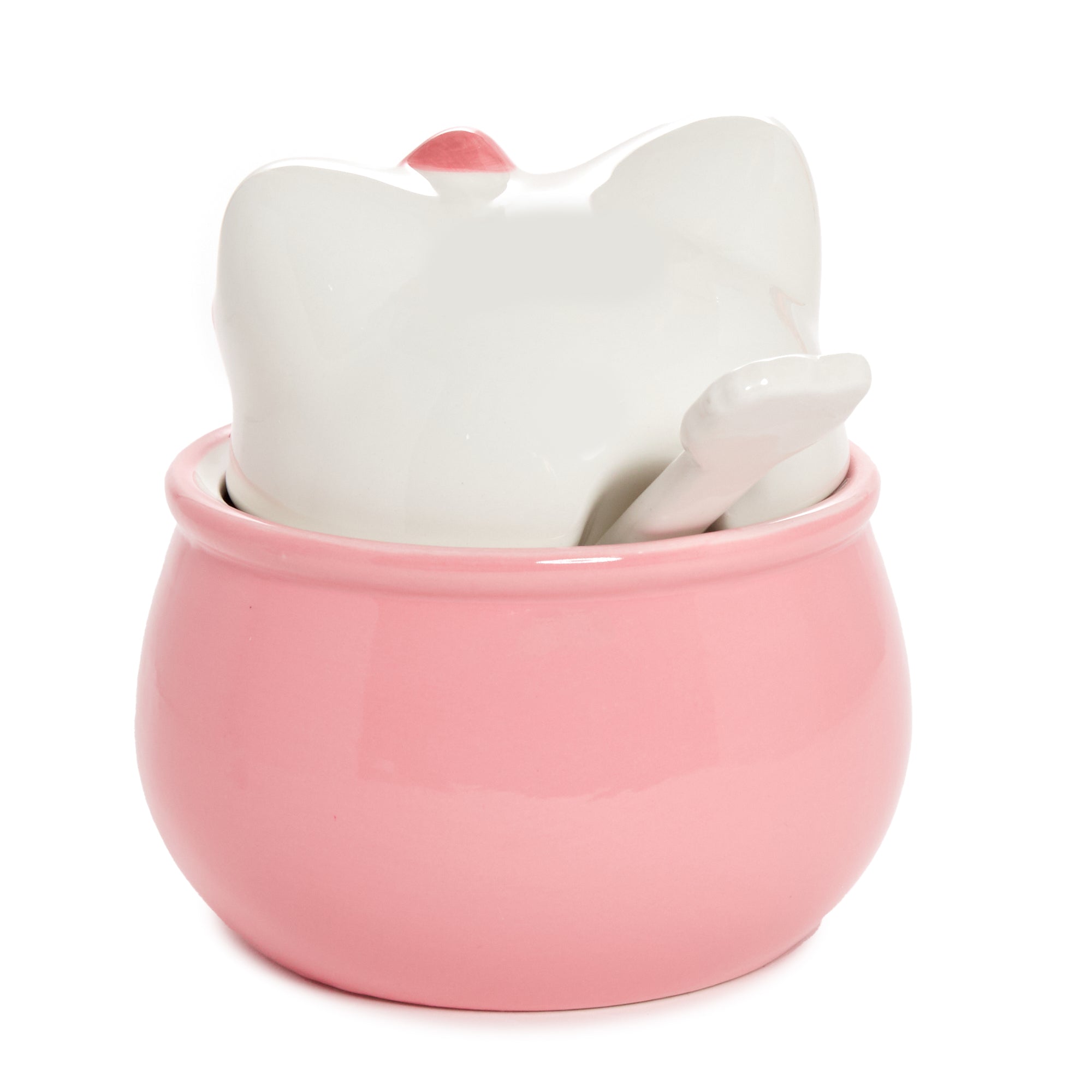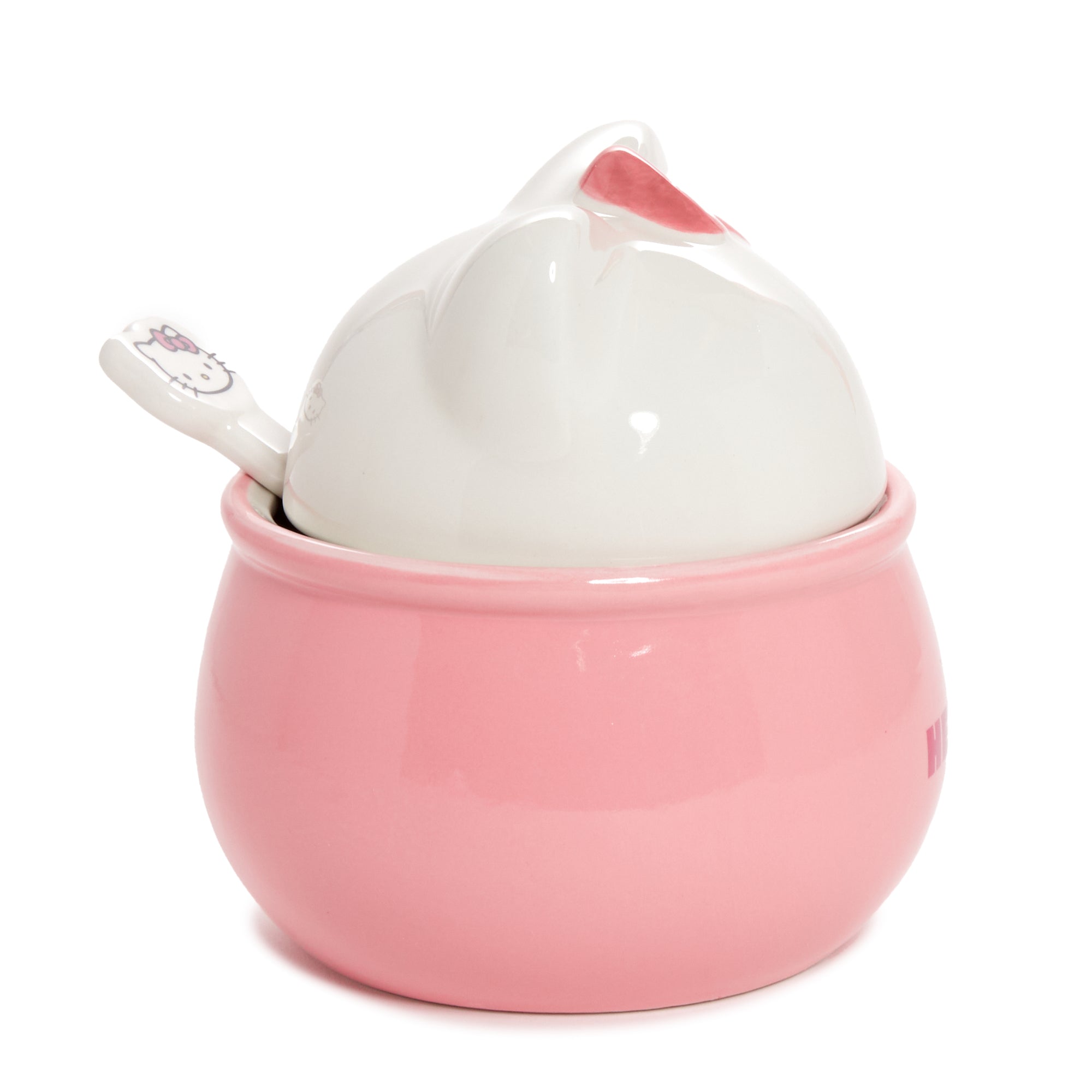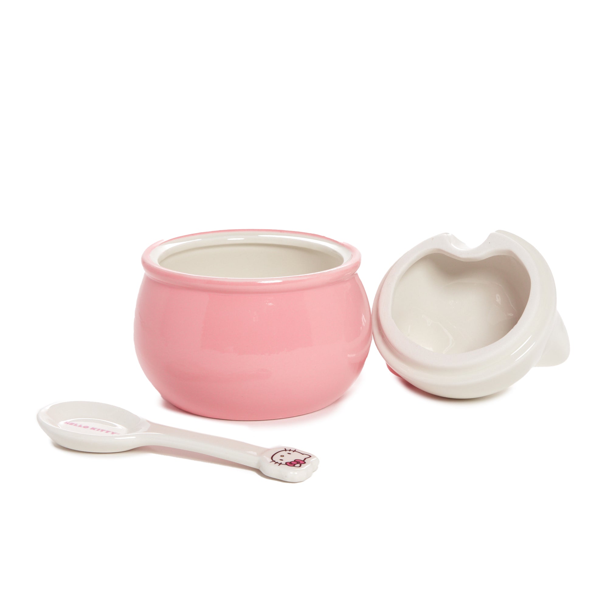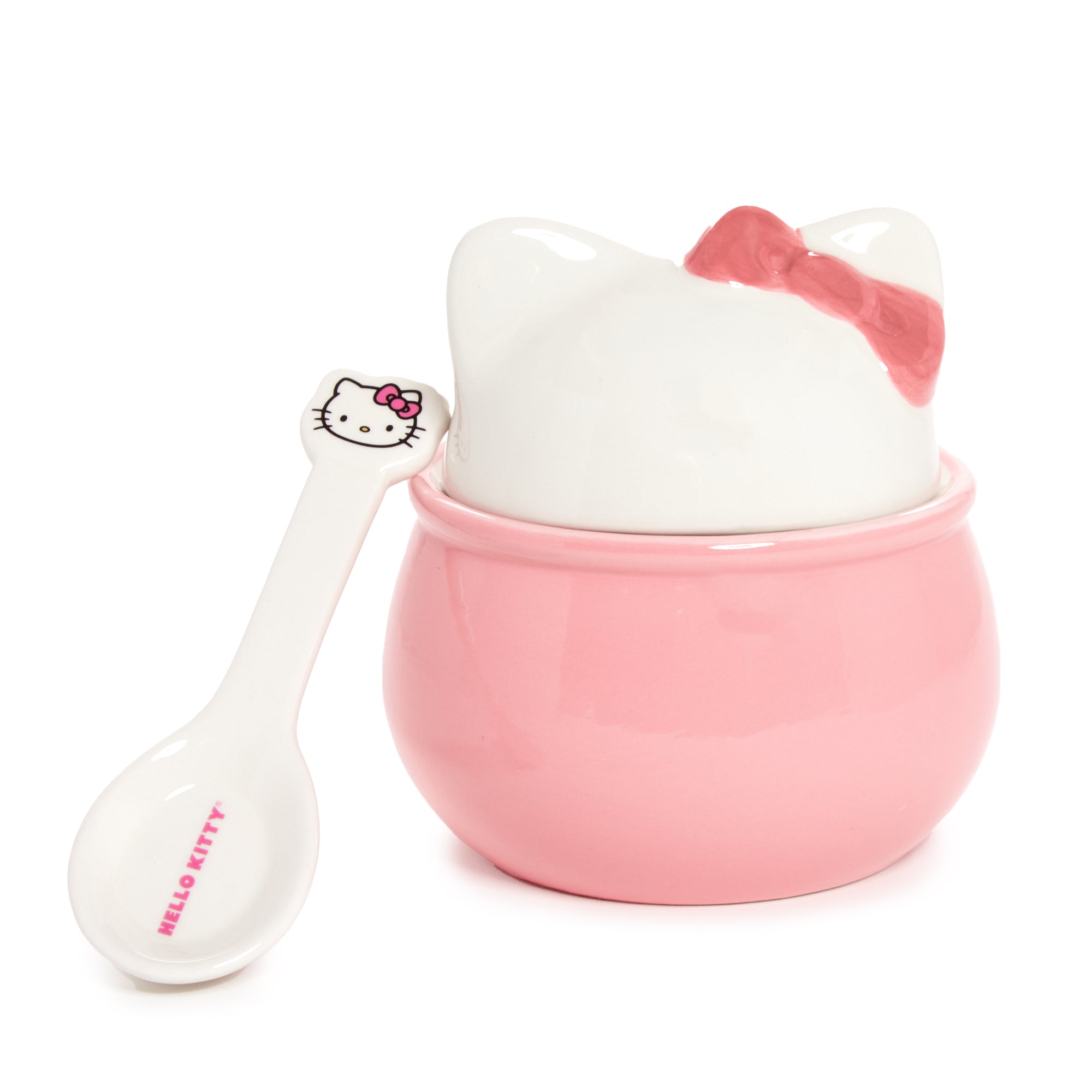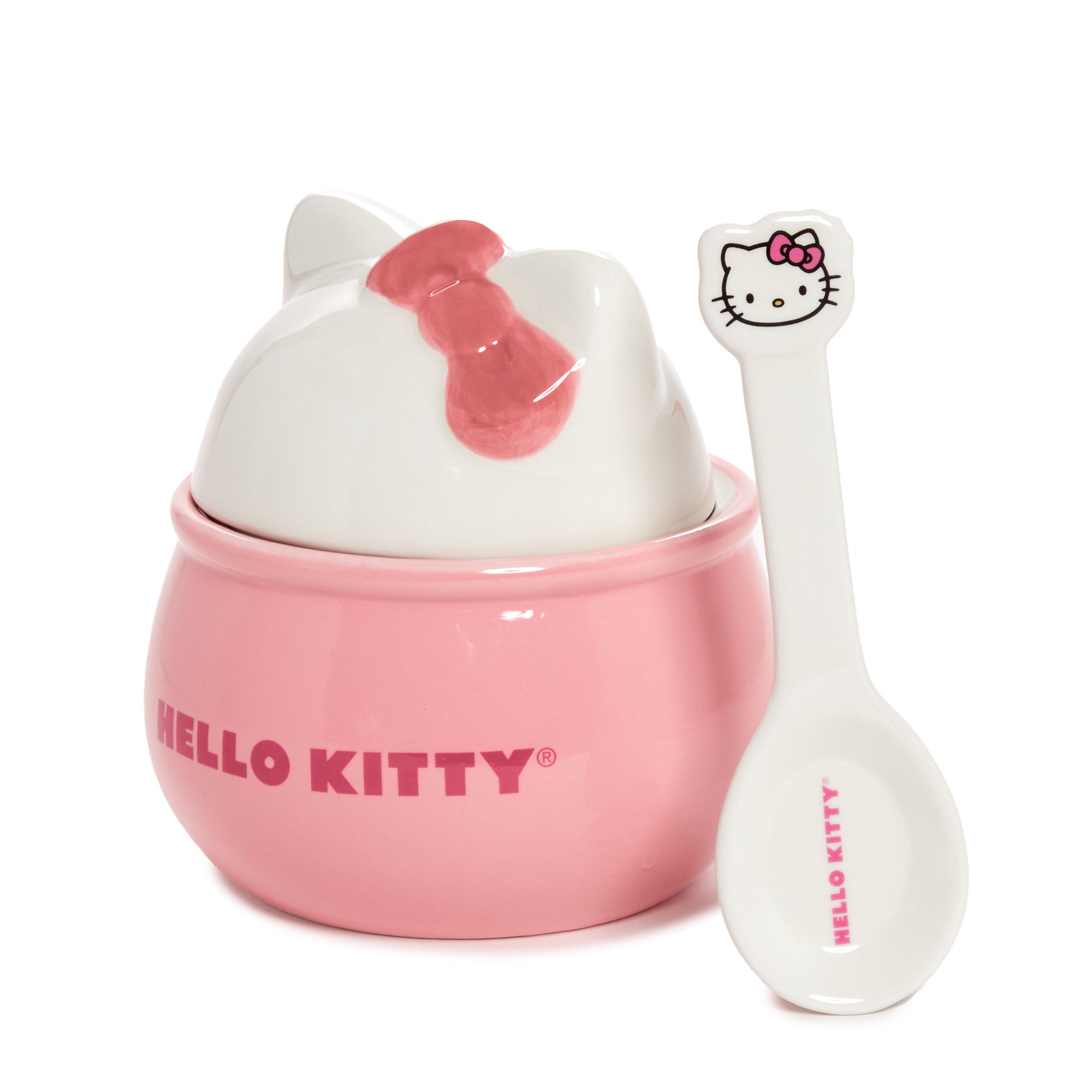 Pretty in pink with Hello Kitty! This adorable ceramic bowl and spoon set is perfect for breakfast foods, sweets, and even desserts, plus it conveniently stacks for easy storage or display!