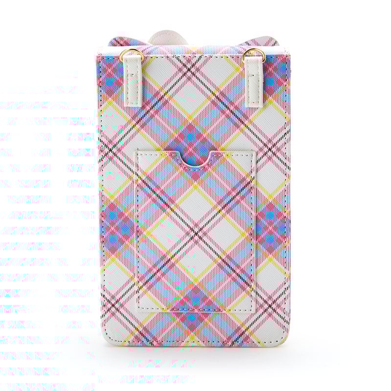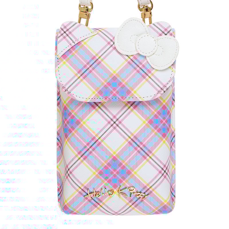 Carry your phone and your main card/ID in this stylish phone bag, featuring Hello Kitty! With a comfortable strap and her signature all-over tartan print, your smartphone is traveling safe and sound!
