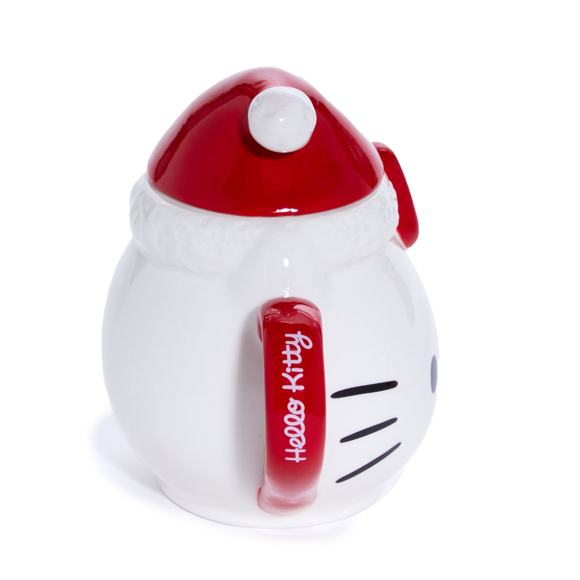 2 is better than one! Hello Kitty appears in this jolly mug and figurine set from Clayworks! The festive pairing features her figural face wearing a Santa-themed bow and outfit – displayed as a mug and mini figurine companion, perfect for adding a touch of charm to your holiday decor.