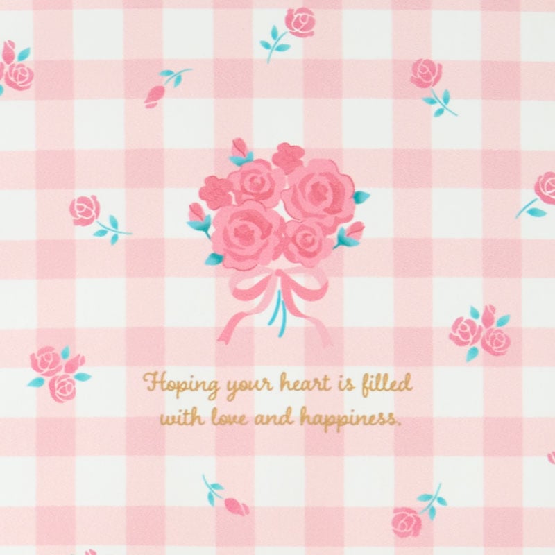 “Hoping your heart is filled with love and happiness.” A kind gesture and sweet words said from your favorite Sanrio Characters in this adorable series featuring fresh-cut rose blooms, gingham, and ribbon accents. Find these soft touches on plush, bags, and small accessories, sure to enchant any fan!