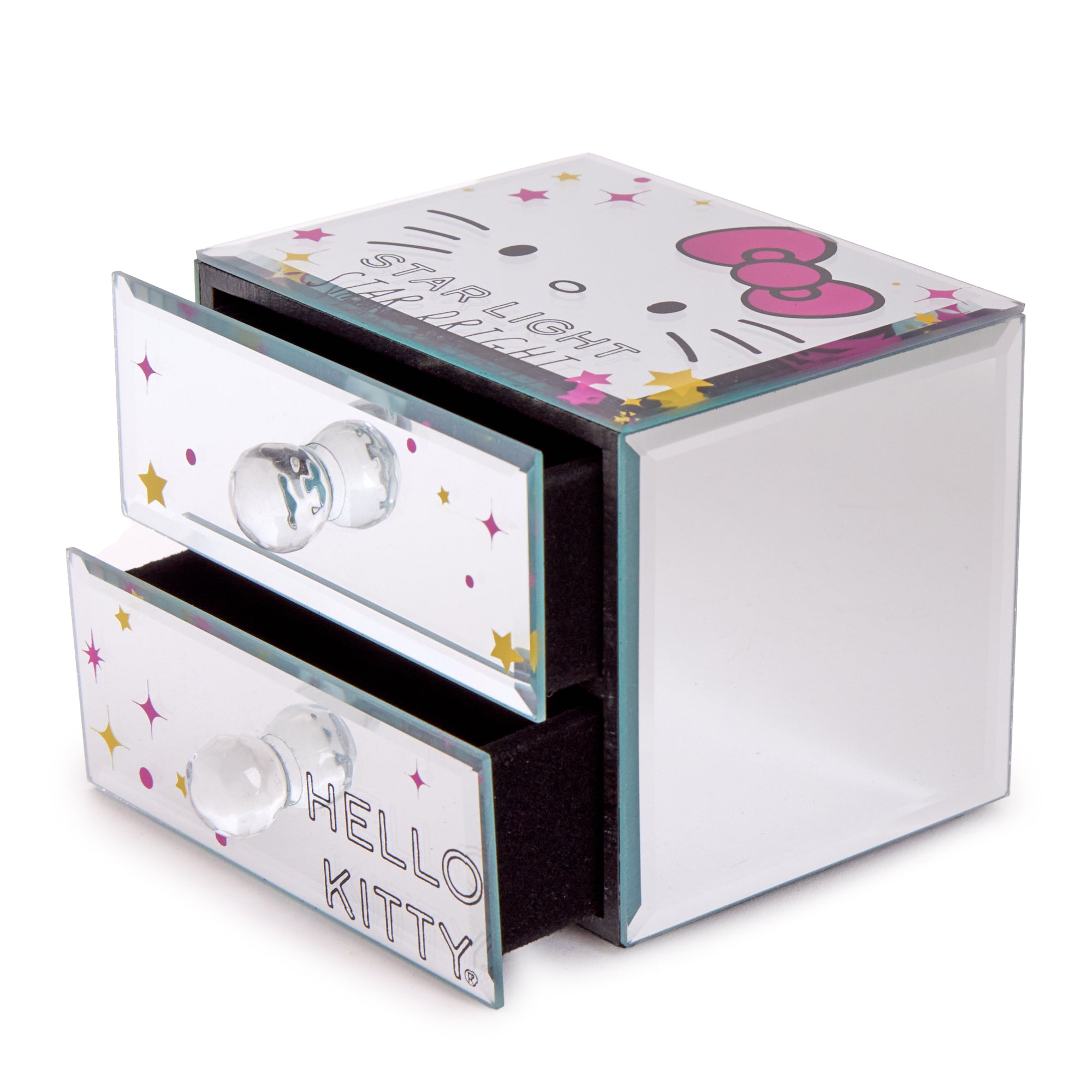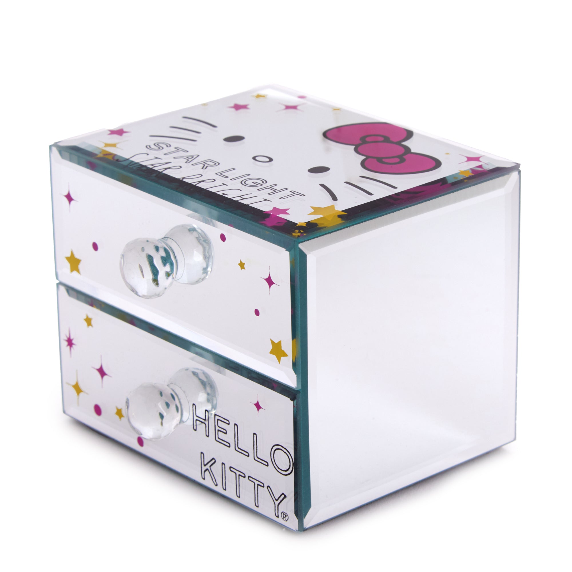 Add a dose of cuteness to your jewelry storage with this compact Hello Kitty jewelry organizer featuring a mirror finish, two drawers, and a luxurious ultra-suede inner lining for all of your precious baubbles. A perfect gift for all Hello Kitty-loving trendsetters on any occasion including Bridal, Valentine’s Day, Christmas, Mother’s Day, Birthdays, Easter, or just because!