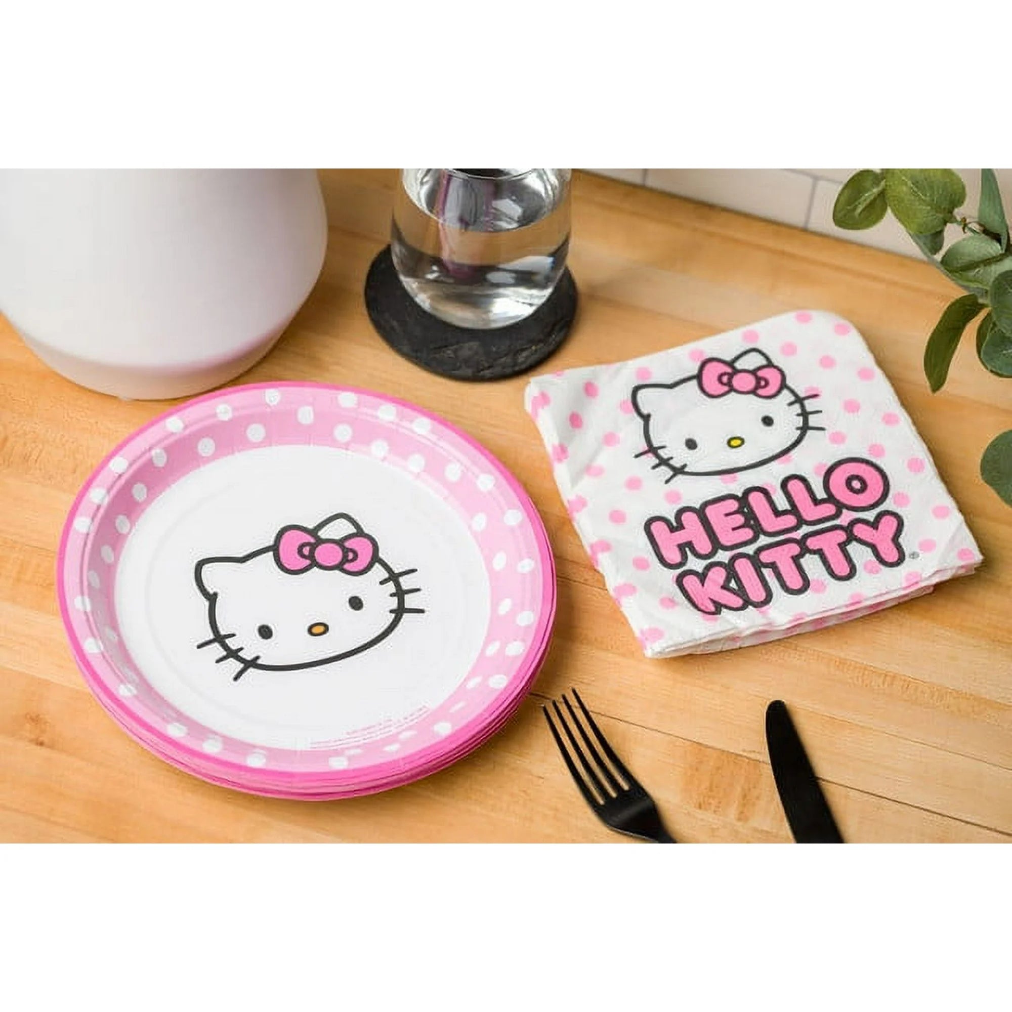Create a “pretty in pink” party setting with this adorable matching plate and napkin combo, featuring Hello Kitty! With bright colorful artwork and matching polka dot accent, everyone can celebrate in style!
