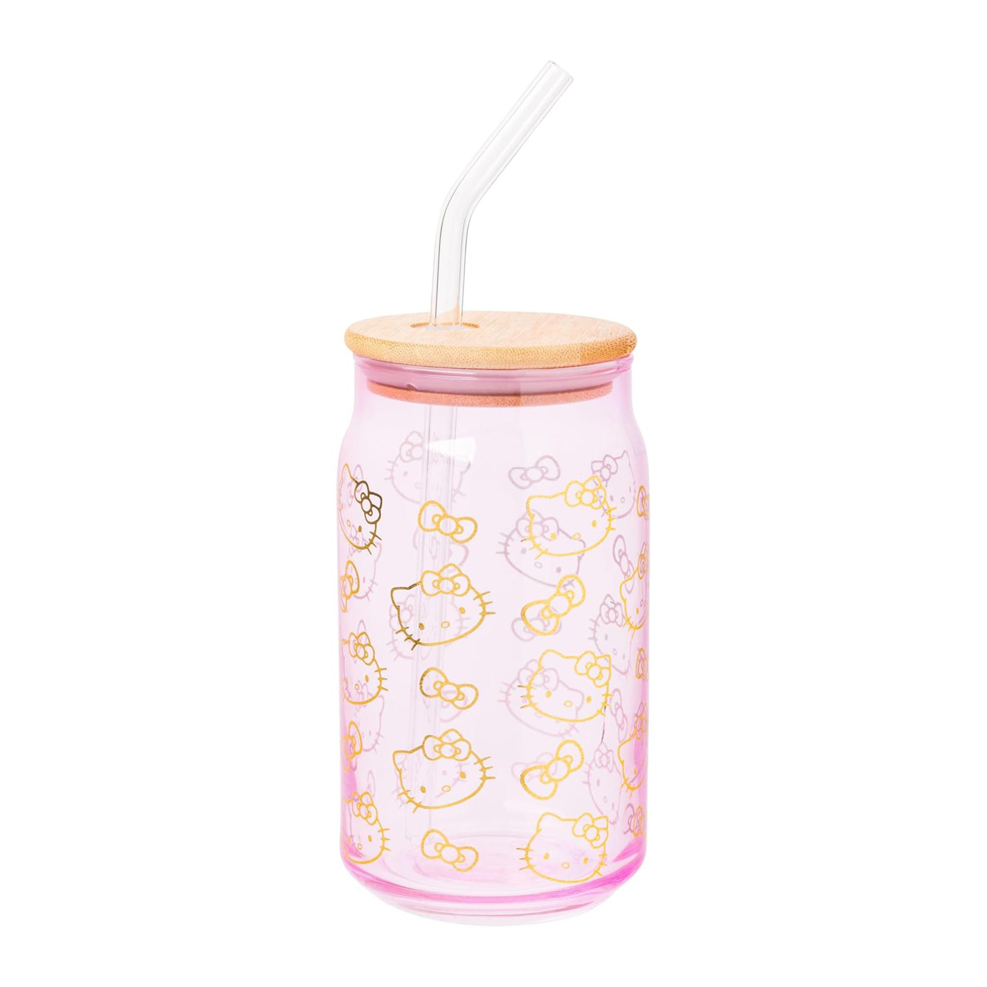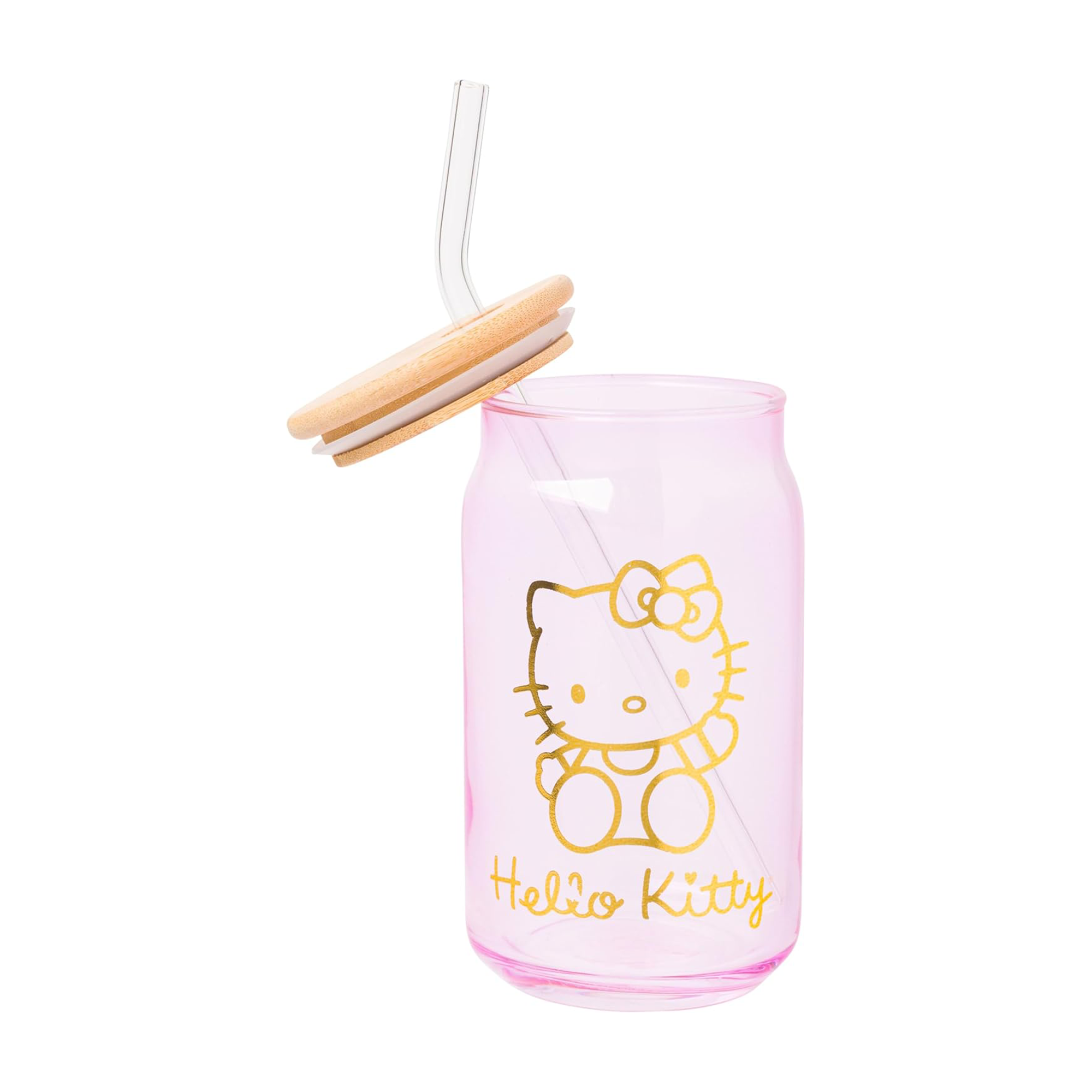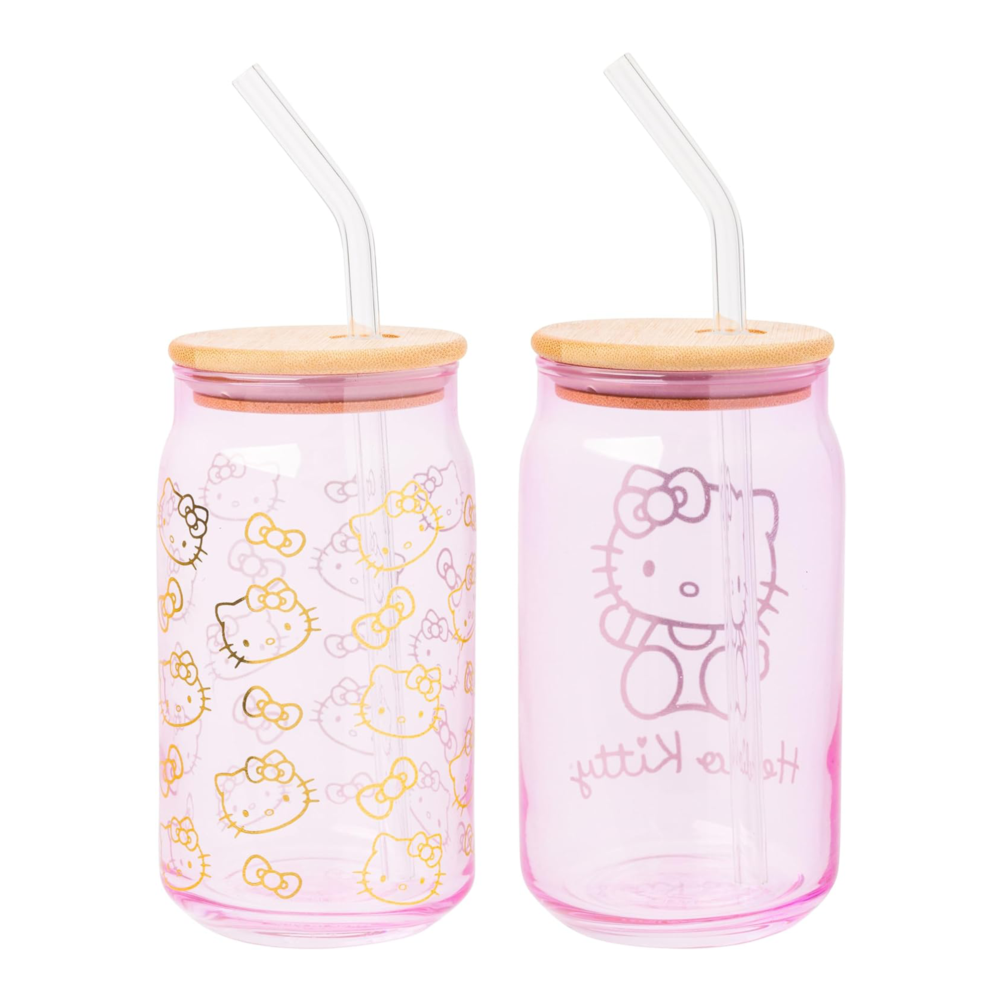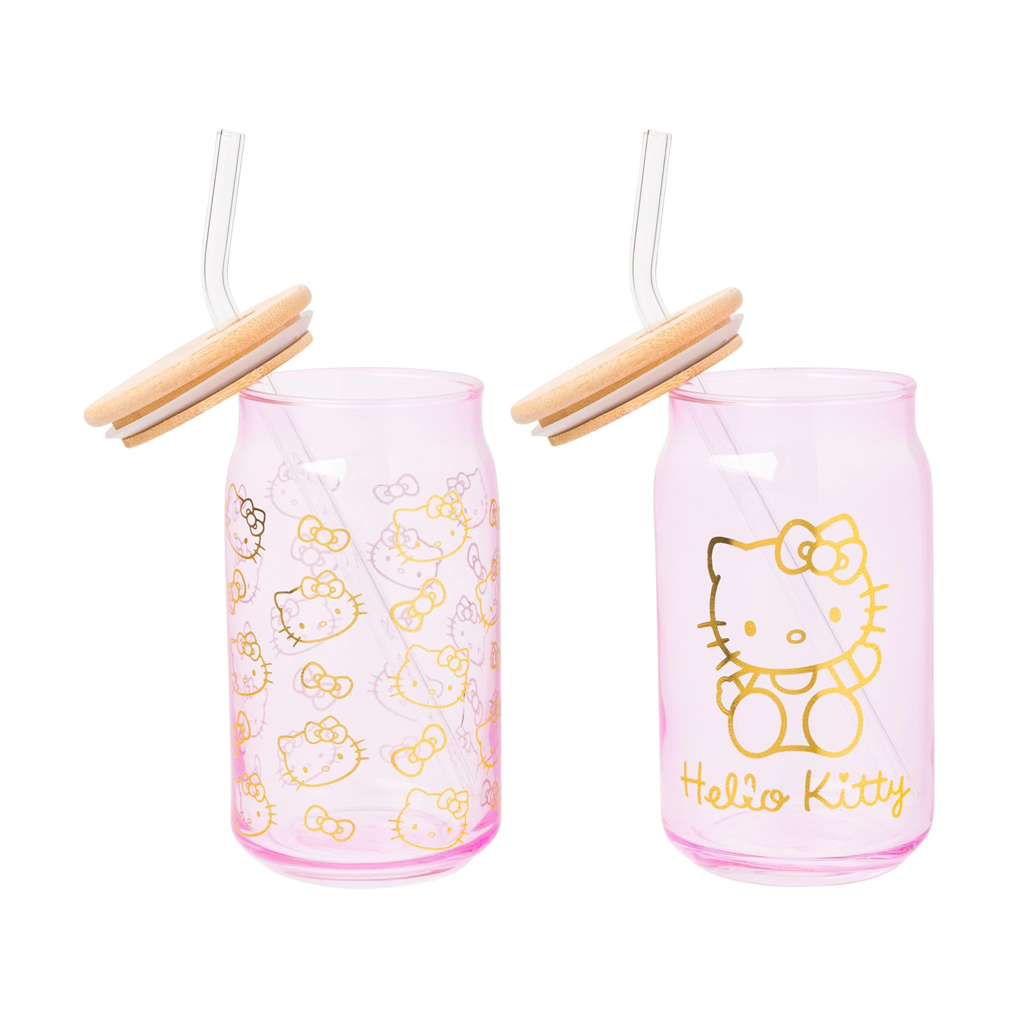 Enjoy your favorite beverages with this Hello Kitty glass tumbler set! Set includes two glass tumblers and features a gold image of Hello Kitty with “Hello Kitty” written beneath her. Complete with a secure bamboo lid and reusable glass straw, these are the perfect cups to bring on your daily adventures or make a great gift for Hello Kitty fans of all ages!