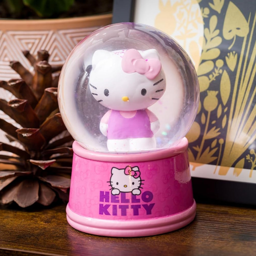 Give this snow globe a light shake and watch pink glitter surround Hello Kitty! Adorably sparkly, this Hello Kitty snow globe makes the perfect decoration or a great addition to nightstands, side tables, and shelves. It also makes a wonderful and unique housewarming gift for Hello Kitty fans in your life!