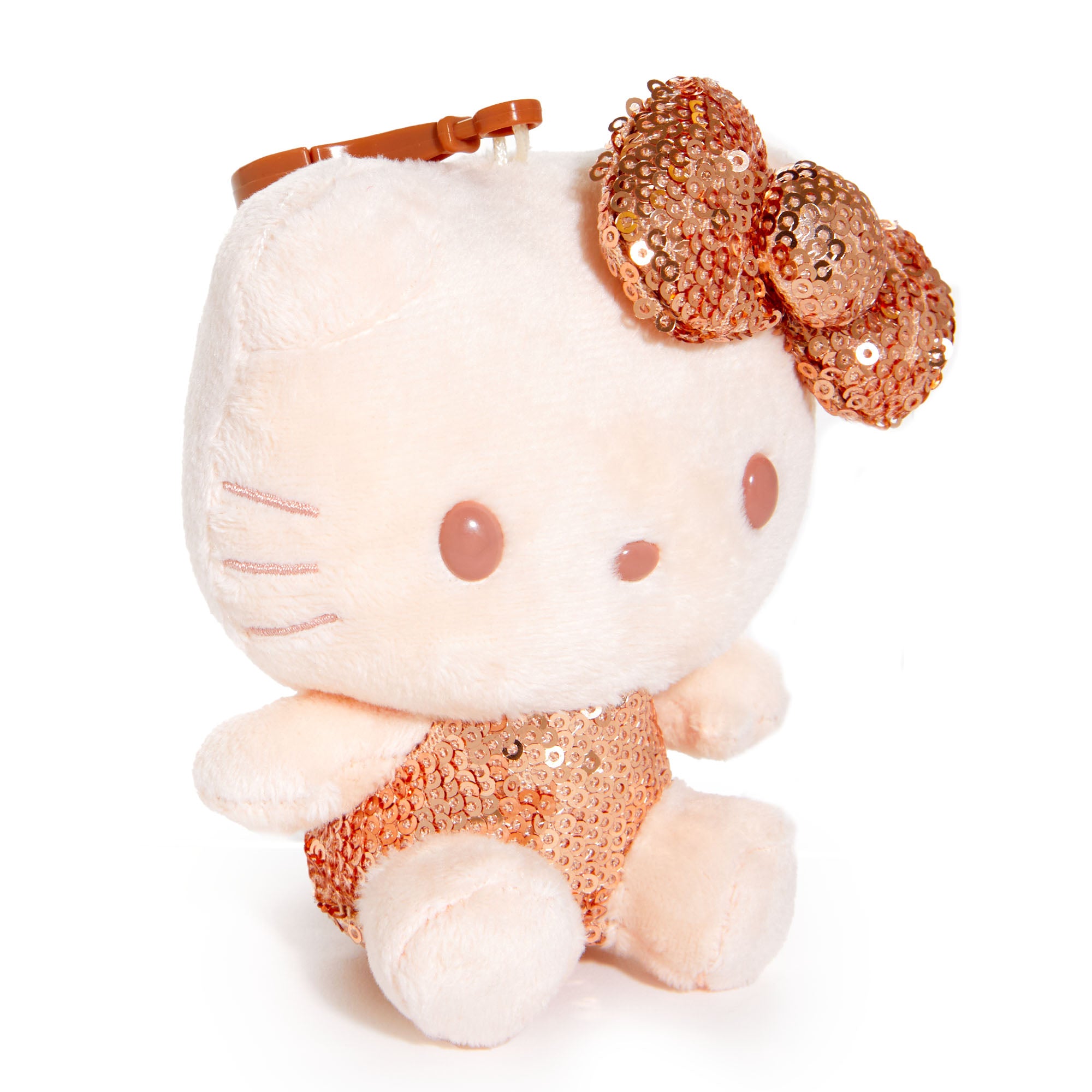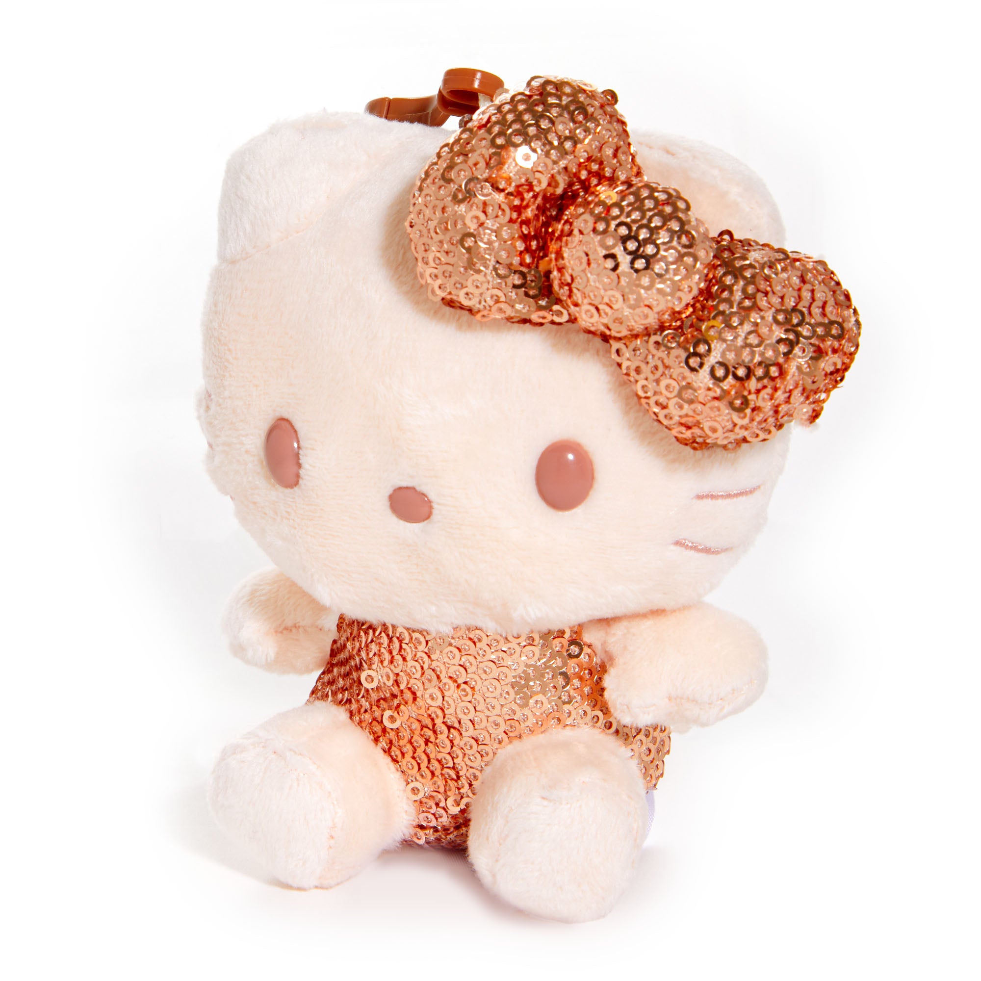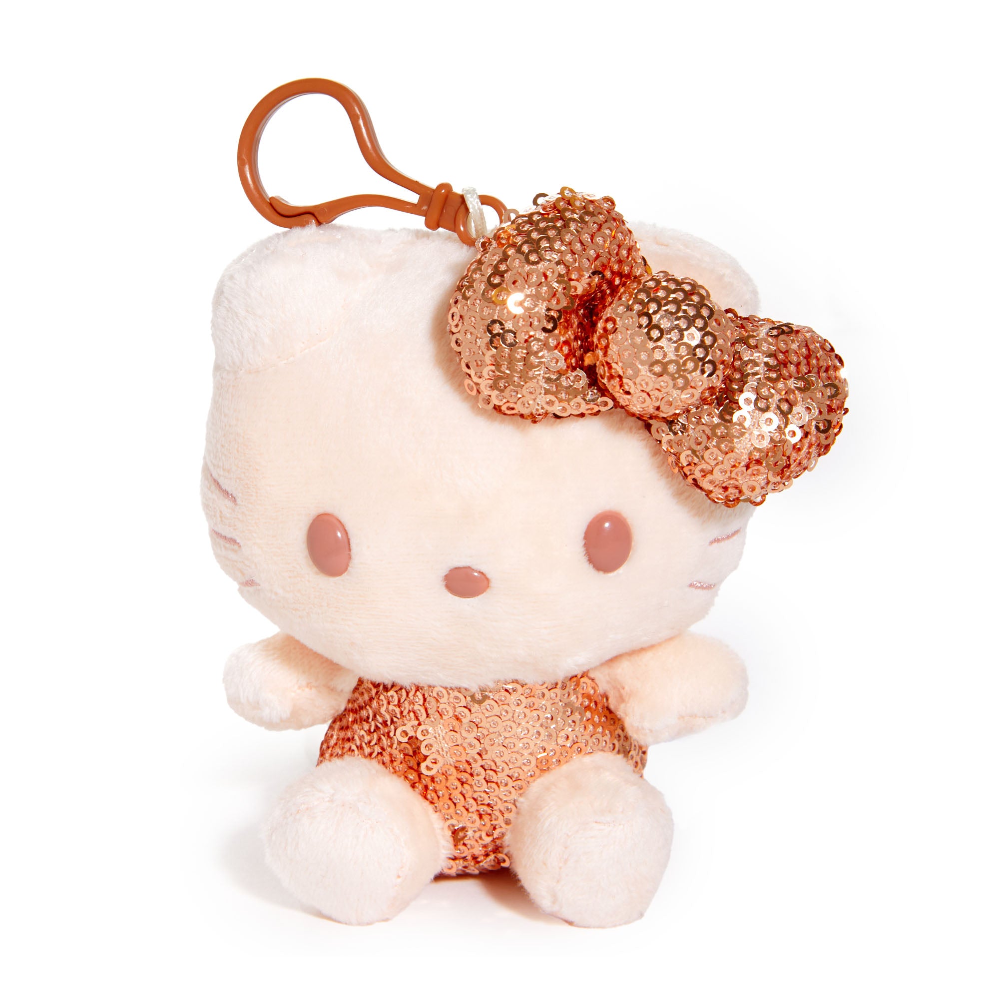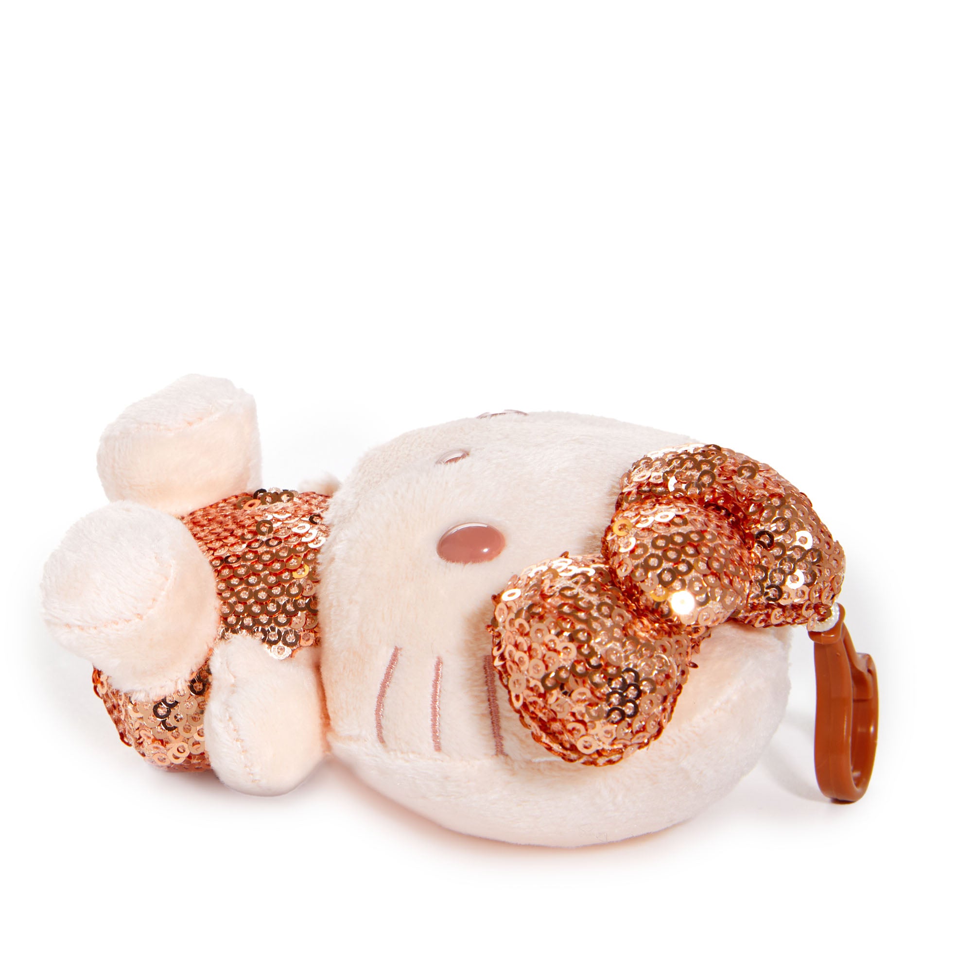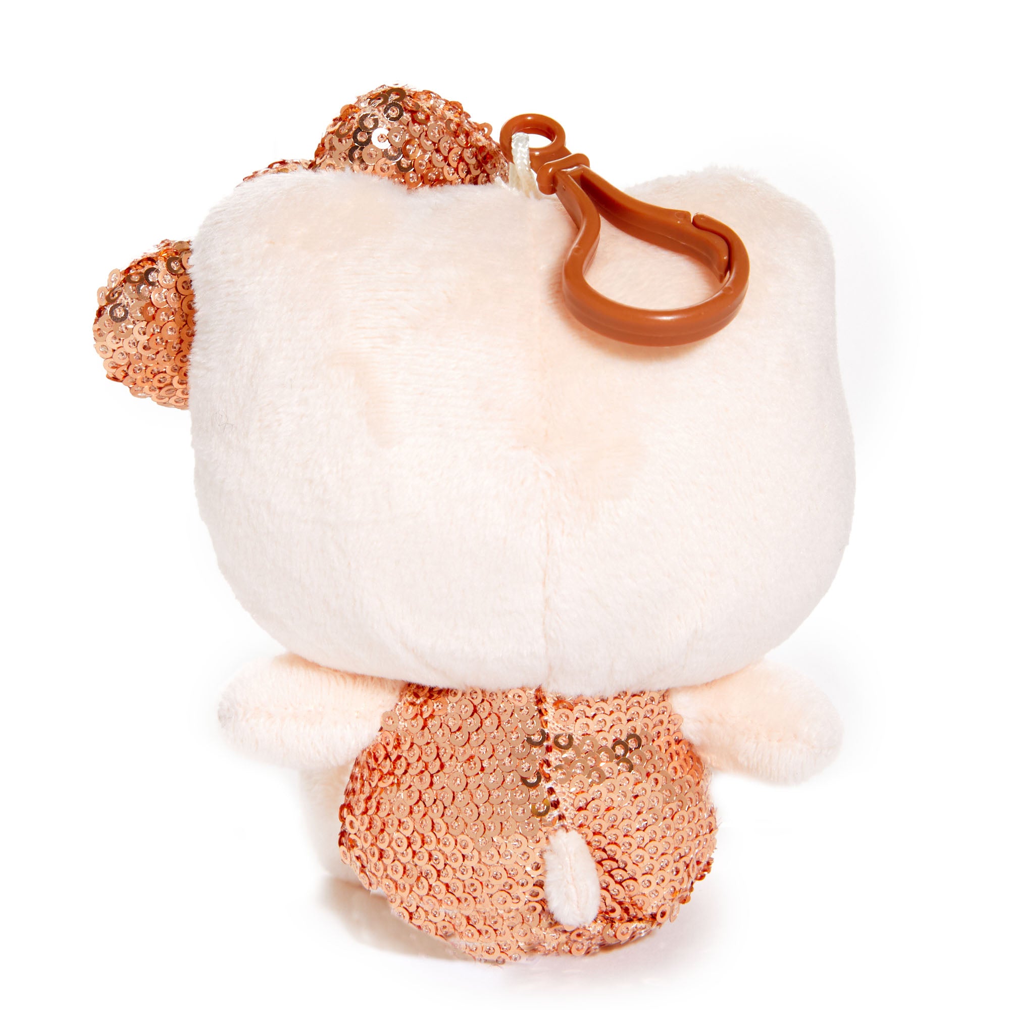 A bit of glitz and glam with the help of Hello Kitty! Accented in rose gold sequins, this stunning plush bag charm instantly spruces up your purse or tote for those special occasion nights and events!