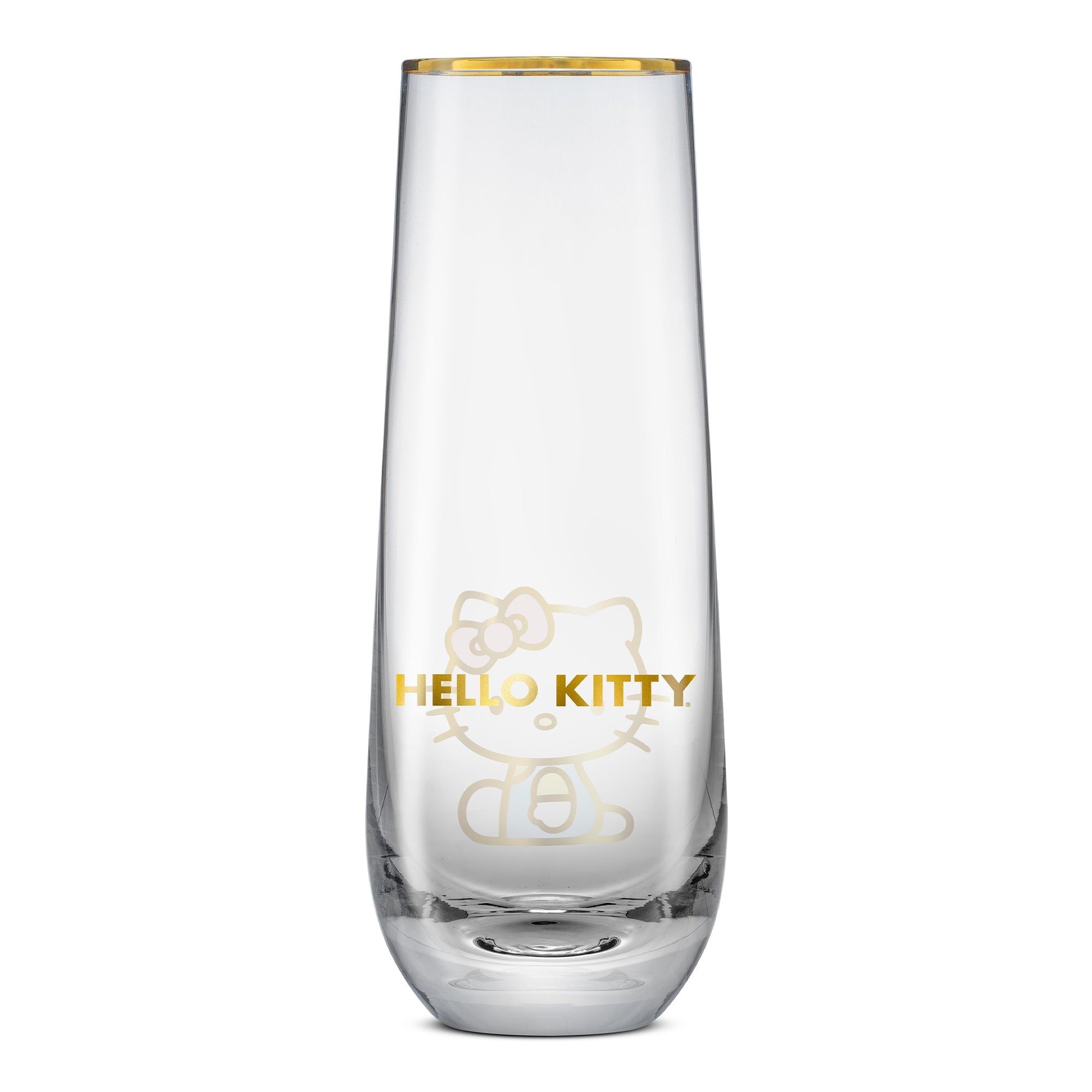 Celebrate with a touch of gold! This enchanting set of 4 Hello Kitty Stay Gold stemless flutes elevates any occasion. Crafted from high-quality, lead-free glass, these highball glasses are perfect for all your favorite beverages, from sparkling waters to refreshing iced teas. The exquisite gold rim adds a touch of glamour, while the charming Hello Kitty outline brings the joy.