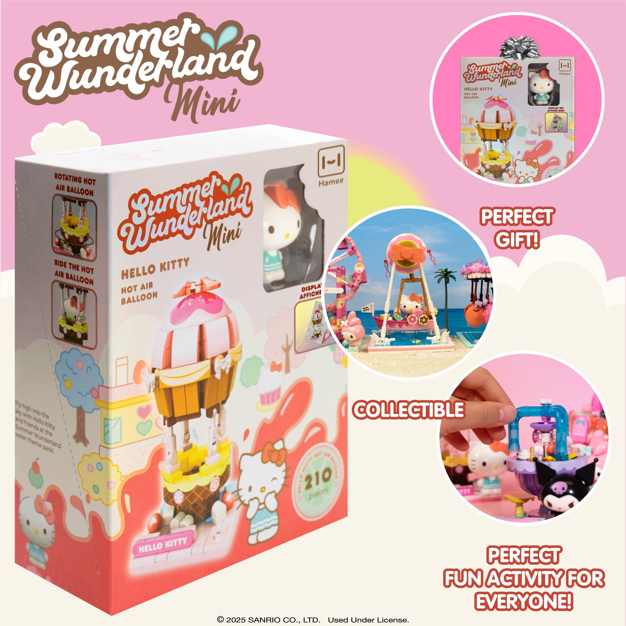 Bring Hello Kitty and Friends to life! Choose from 4 characters: My Melody, Cinnamoroll, Hello Kitty, and Kuromi. Each building toy set features a unique scene to create your own whimsical Summer Wunderland. Perfect for collectors and fans alike!