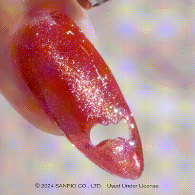 – Apply a layer of sparkly Hello Kitty Gel Couleur and then use your Magic Magnet Wand to create your desired look. Once satisfied, cure in an LED light for 30s. Finish with Top Gelcoat and you’re ready for a day of magic with Hello Kitty and Friends!