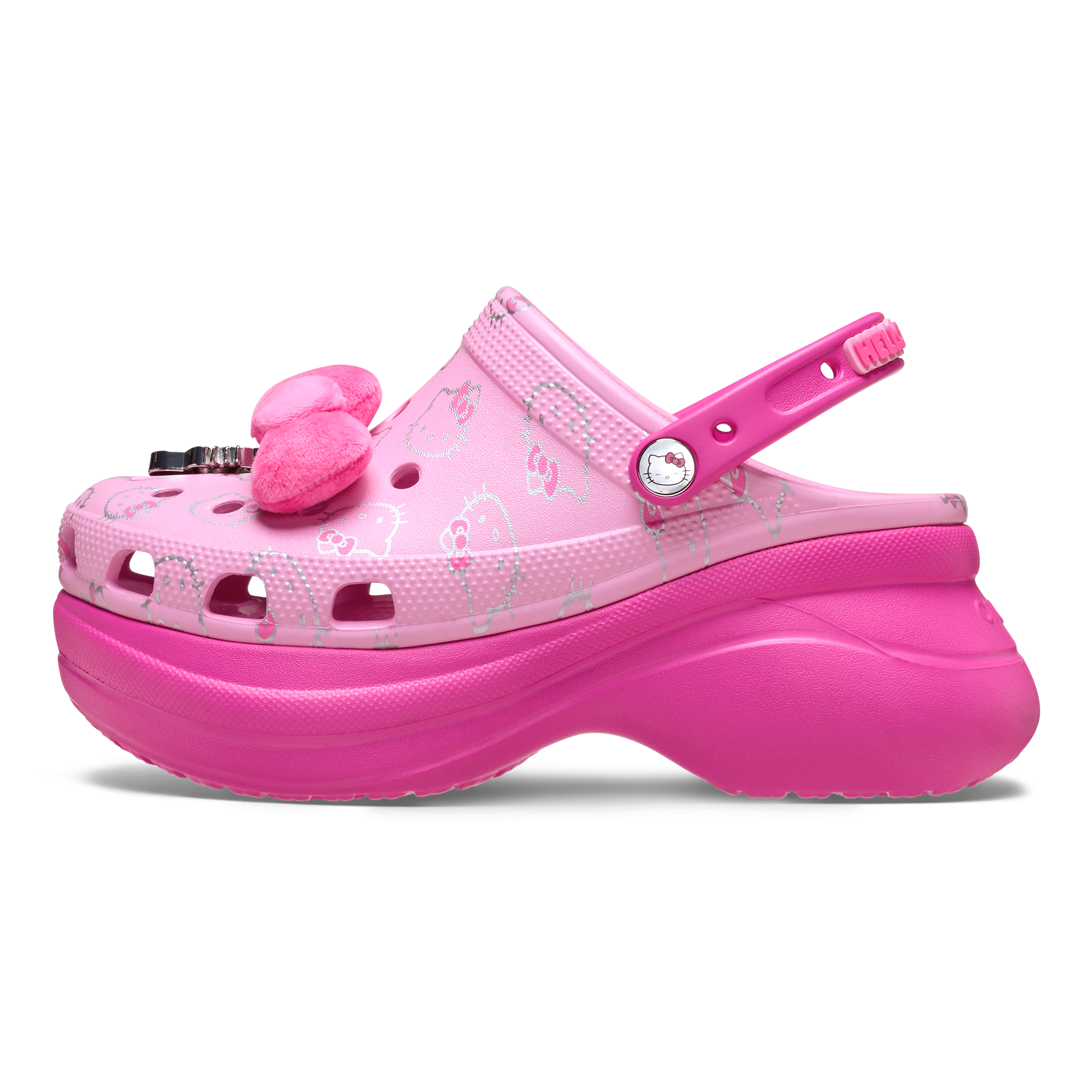The Classic Clog has been reimagined with an extra dose of height, attitude, and style. Introducing the new Hello Kitty Bae Clog, featuring an ultra-contoured outsole that supports the upper you know and love. This stylish version features coordinating Hello Kitty Jibbitz™ charms with a contrasting all-over print pattern. Plus, the new customizable backstrap also holds Jibbitz™ charms, so you can personalize your look even more. When you’re feeling a little extra sweet, flaunt it fearlessly with Hello Kitty by your side!
