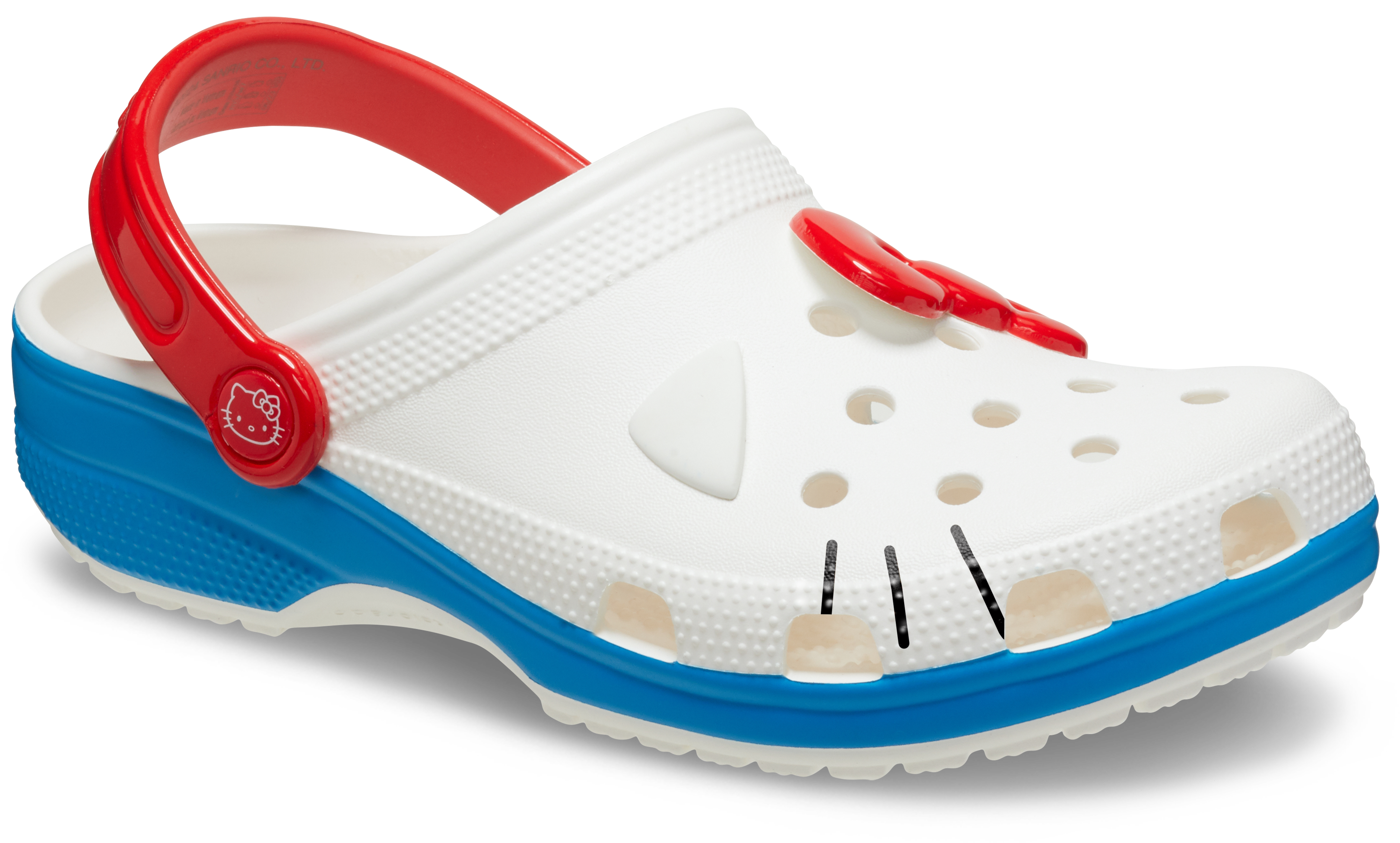 Part of Hello Kitty’s 50th Anniversary Collection, this Hello Kitty Classic Clog is inspired by the Hello Kitty who originally debuted in her classic blue overalls and big red bow.