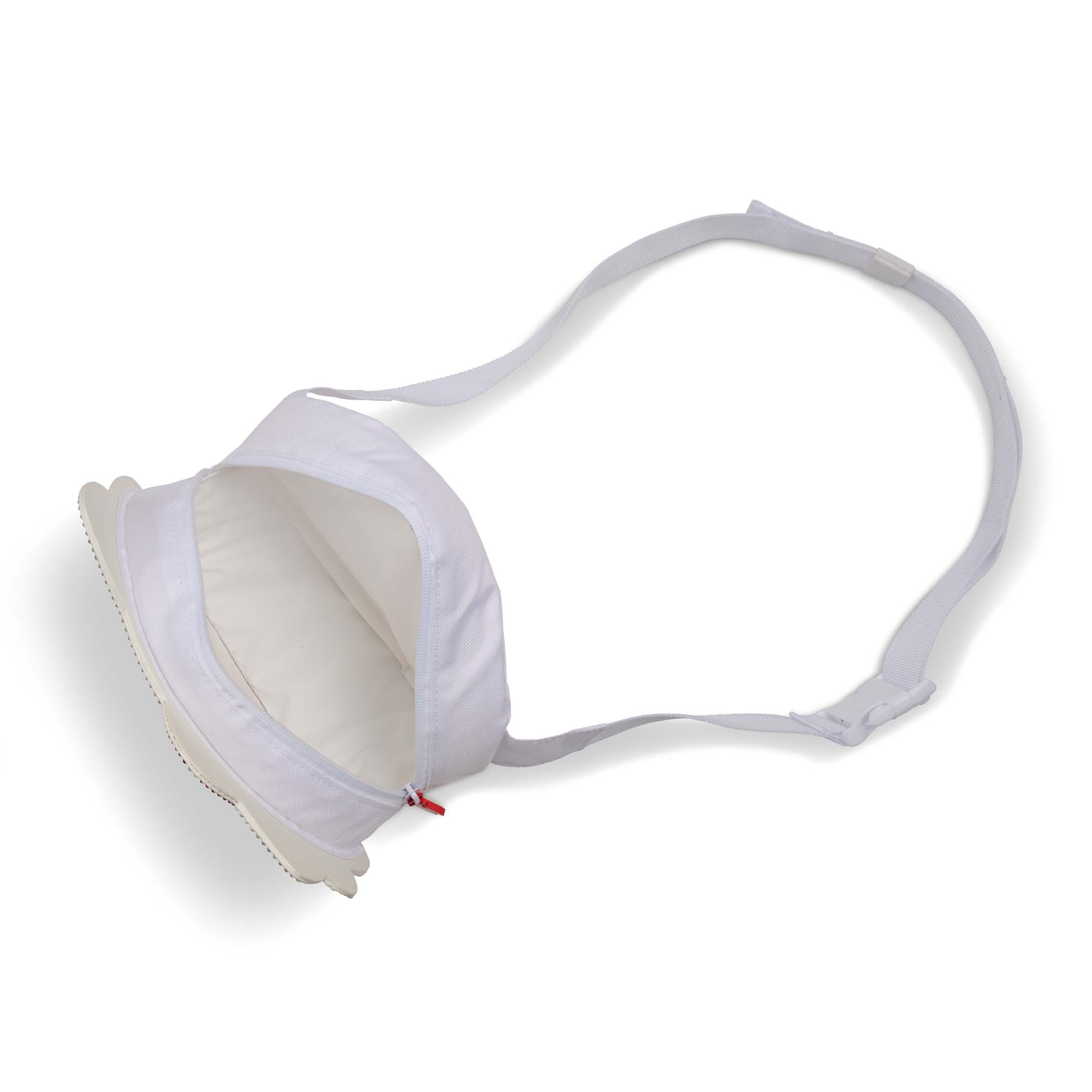 ♡ Wearable white cooler bag in the shape of Hello Kitty’s face and bedazzled with sparkling rhinestones