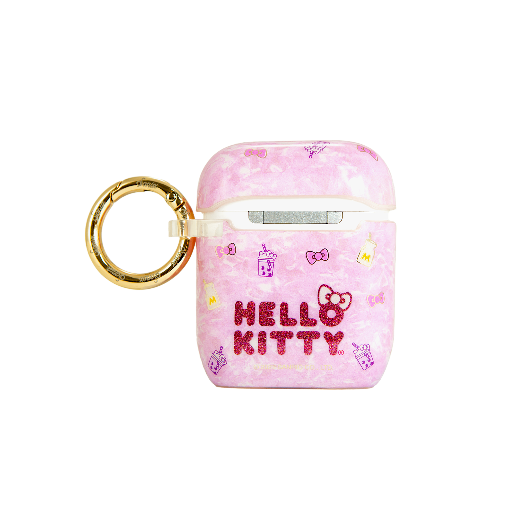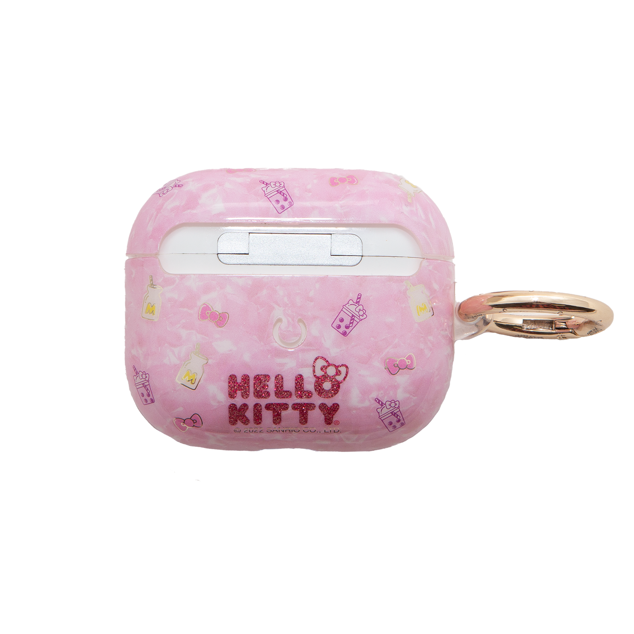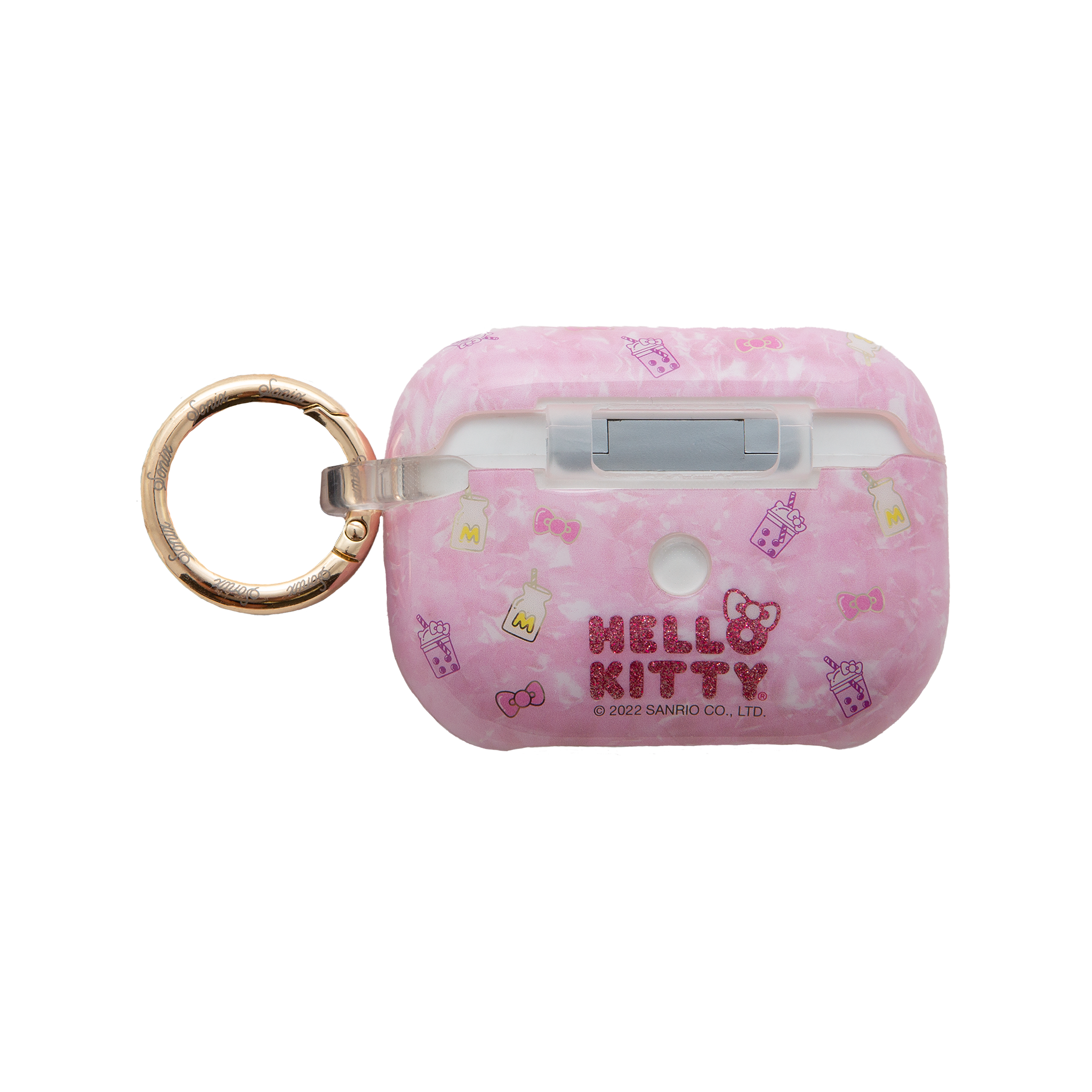 Obsessed with milk tea? The Hello Kitty Boba collection features a supercute pink design with glittery text. Use the snap hook to attach your case somewhere securely.