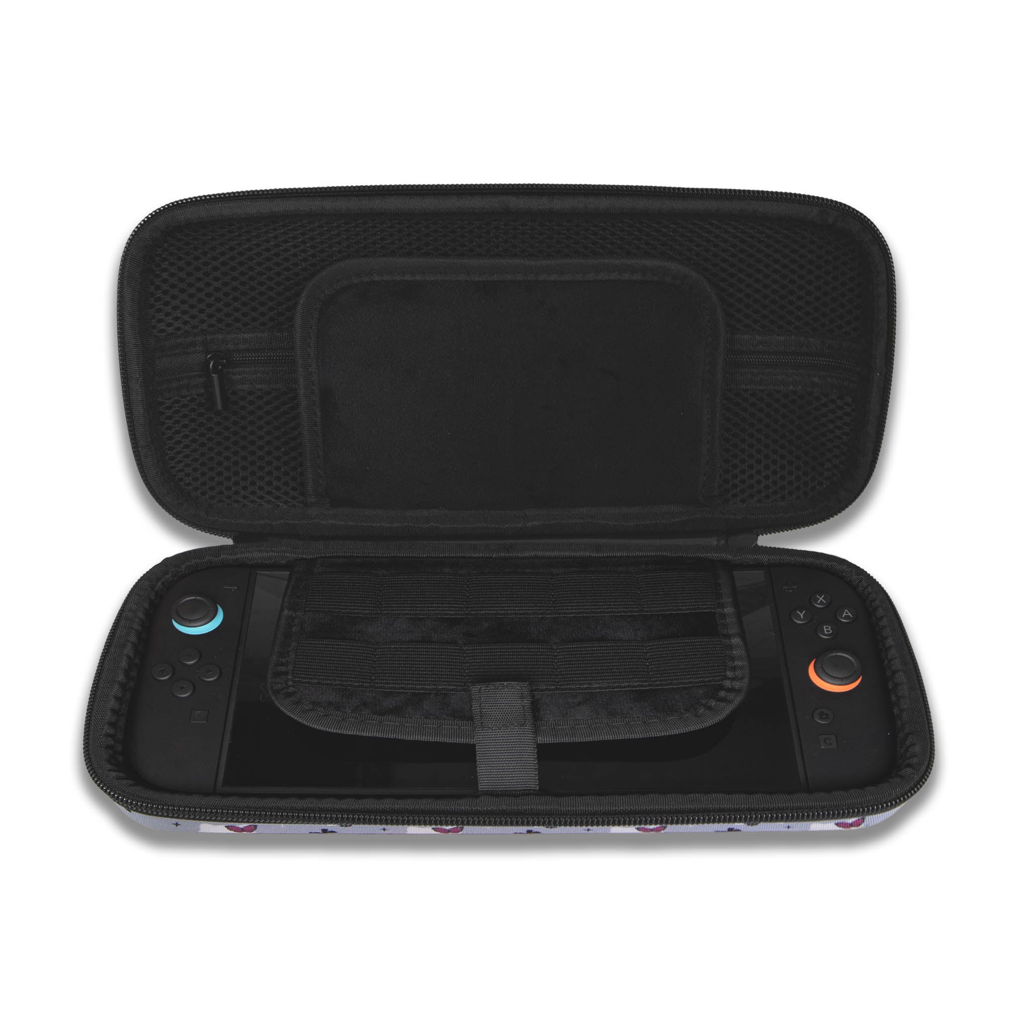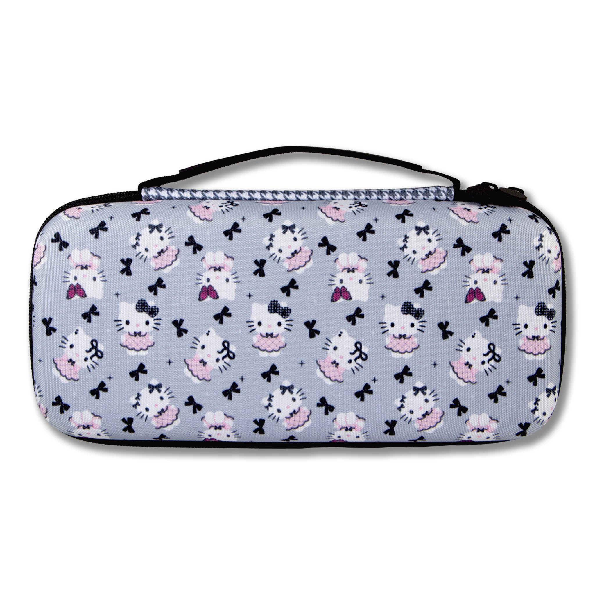The Hello Kitty Butterfly carrying case features a chic black ribbon bow motif that showcases Hello Kitty on a classic black and white houndstooth printed background. Your favorite feline has never looked more sophisticated or adorable. Keep your Nintendo Switch cute and protected with this classically cute design!