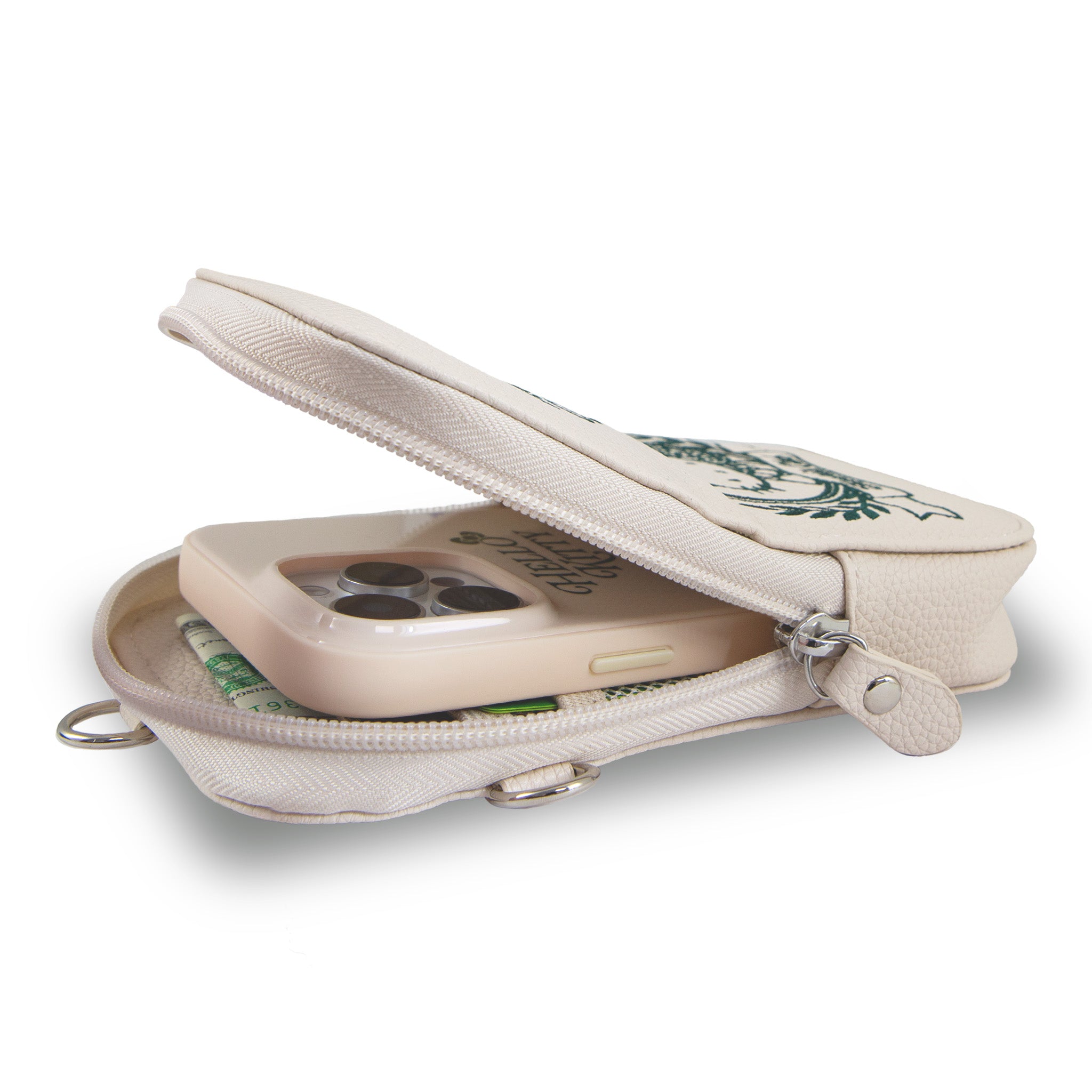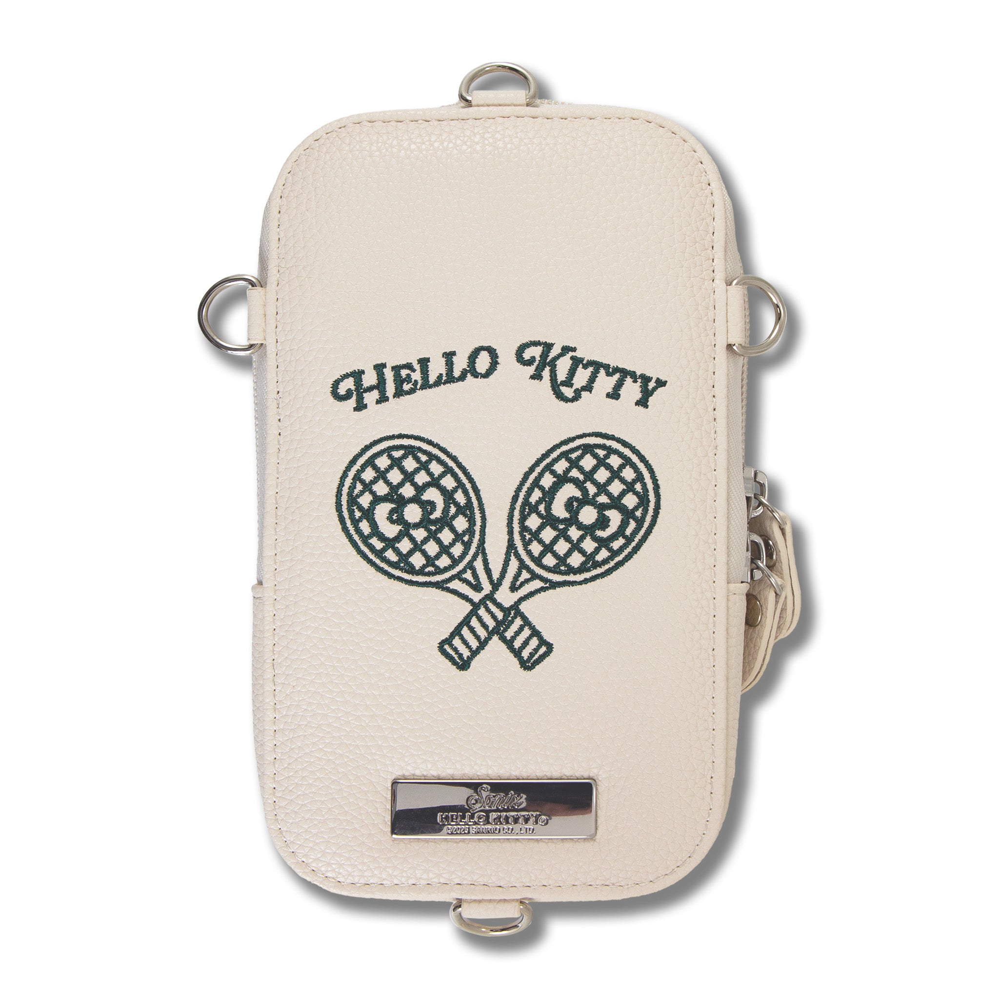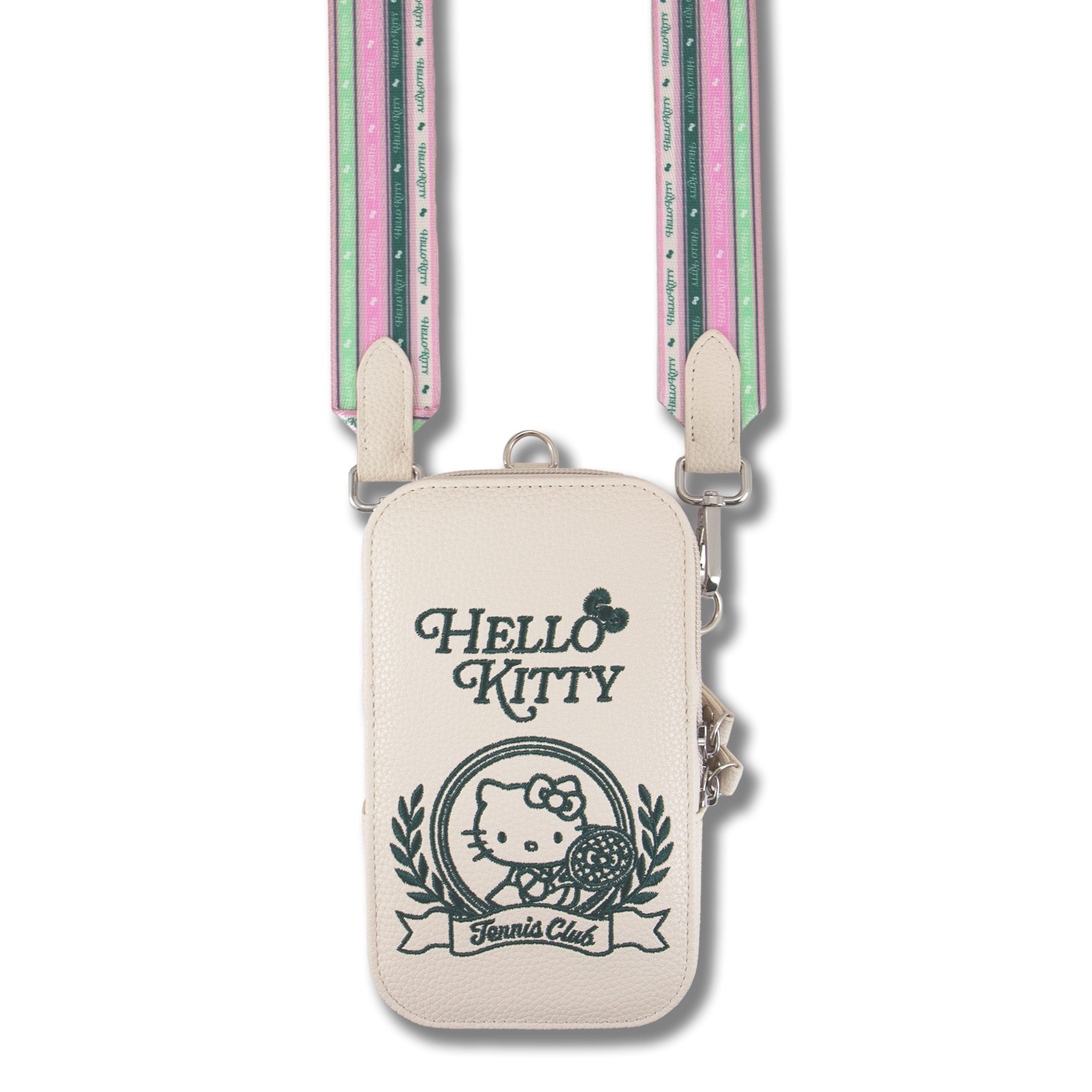 The Hello Kitty Tennis Universal Phone Wallet was designed to multitask and look super sporty for on-the-go! Its 3-in-1 design lets you wear it as a crossbody bag, fanny pack, or wristlet. Crafted from beige Vegan pebbled leather, with an embroidered design featuring exclusive Hello Kitty Tennis Club art, Hello Kitty has never looked so good, or so chic!