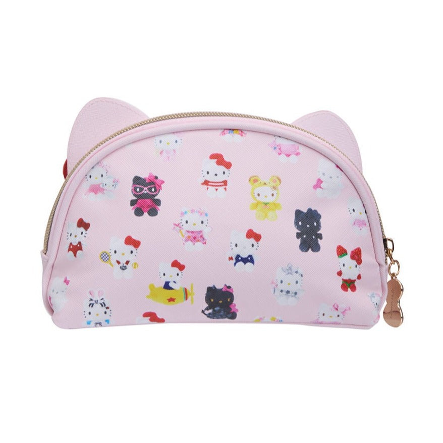 It’s Hello Kitty’s 50th Anniversary and we’re celebrating her many looks throughout the years! Take this supercute cosmetic bag anywhere – from weekend trips or storing your daily essentials. Fun cat ears, Hello Kitty’s signature red bow, and a colorful all-over print make this a must-have for any fan!