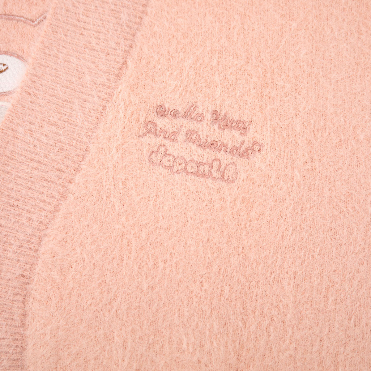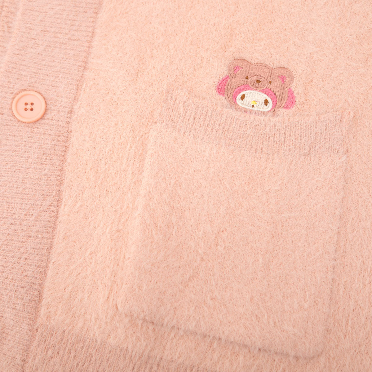 Stay stylishly snug with the My Melody Cozy Kuma JapanLA Cardigan. This soft and fuzzy cardigan features dainty text embroidery, embroidered applique of My Melody in a bear outfit in the front pocket and on the back, and satin bows along both sleeves. With your cozy companion by your side, this cardigan is perfect for lounging on lazy days or keeping warm on chilly outings!