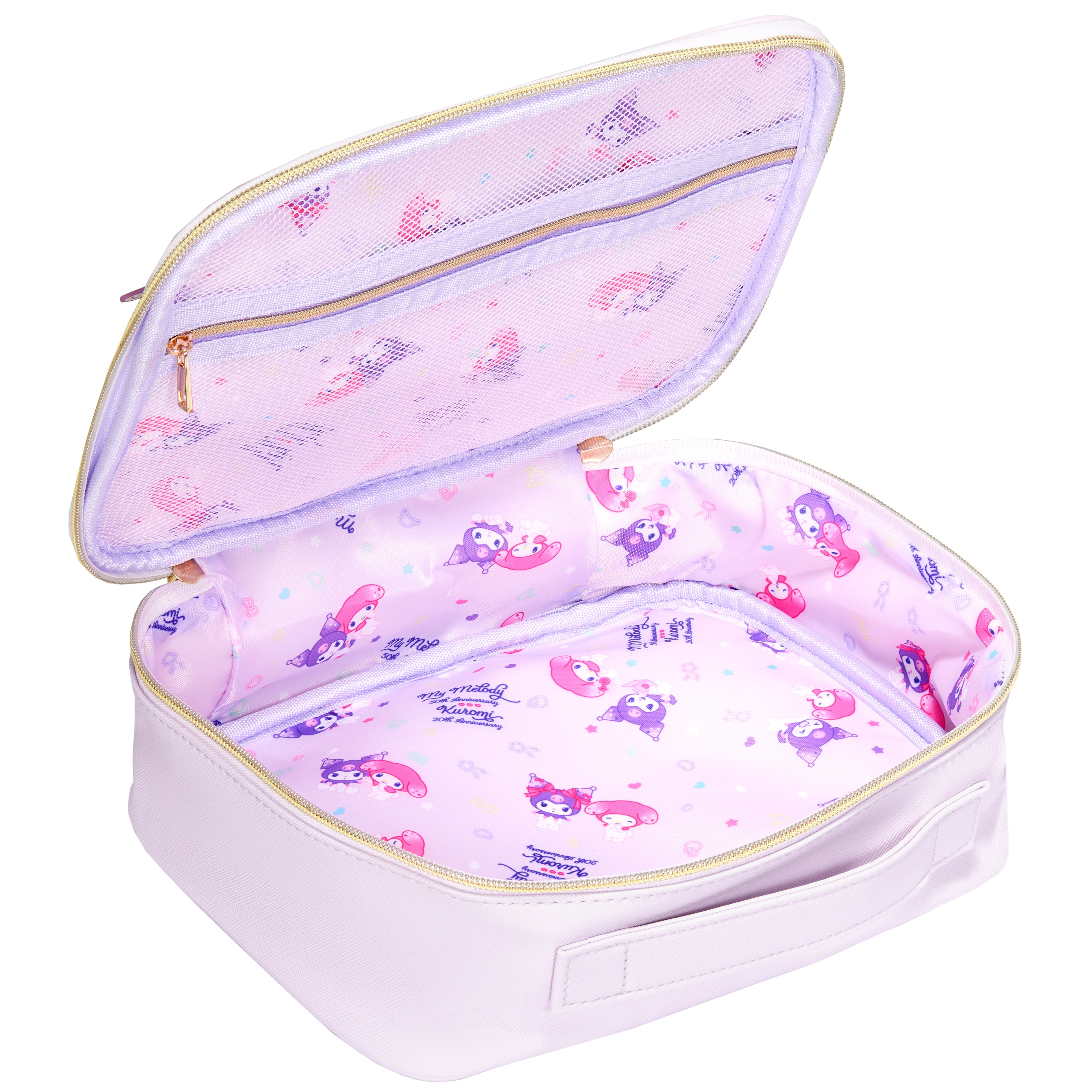 Adorable & Practical: Features a My Melody and Kuromi design on the outside and a mesh zip pocket inside for keeping smaller items in neatly in place. Carry your cosmetics with charm with this Makeup Bag! Designed to hold all your favorite tools, it keeps everything organized and easily accessible. Built to last with durable stitching and high-quality materials, it also includes an interior mesh zip pocket for smaller essentials.