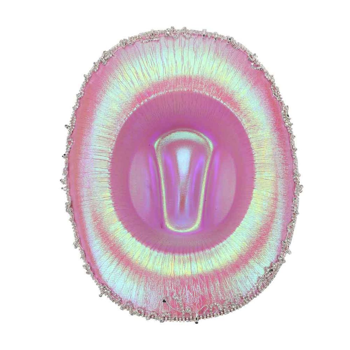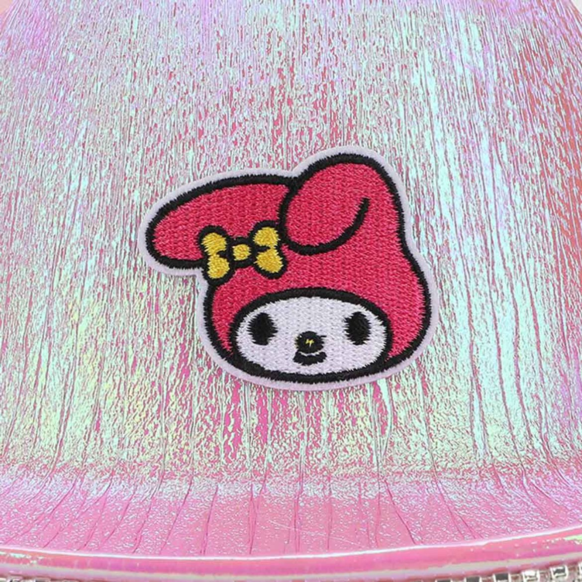 Grab your hat and let’s ride off into the sunset! This one-of-a-kind, pink iridescent cowboy hat is decorated with the prettiest rhinestone dangle trim and playful design perfectly suited for fans of sweet, My Melody!