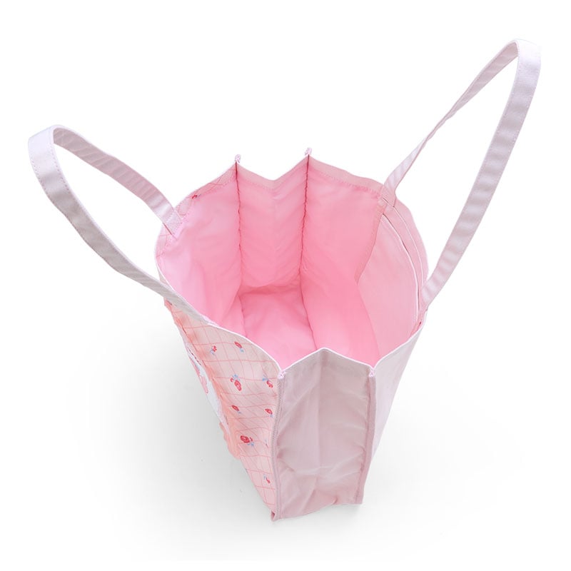 Frilly and decorated with a dainty rose print, this tote can hold your school, travel, and daily needs. The light-colored internal lining makes it easy to see your belongings in one place!