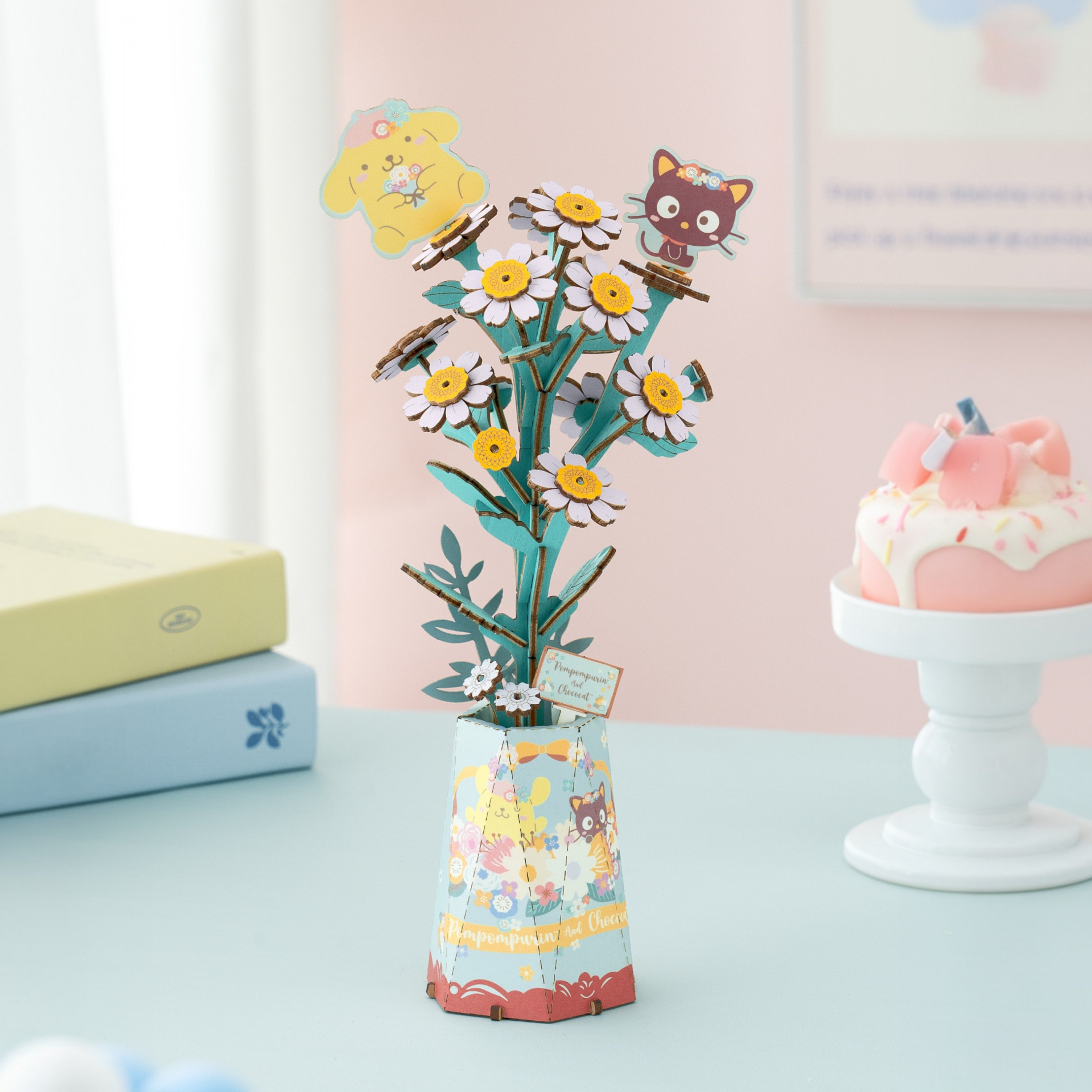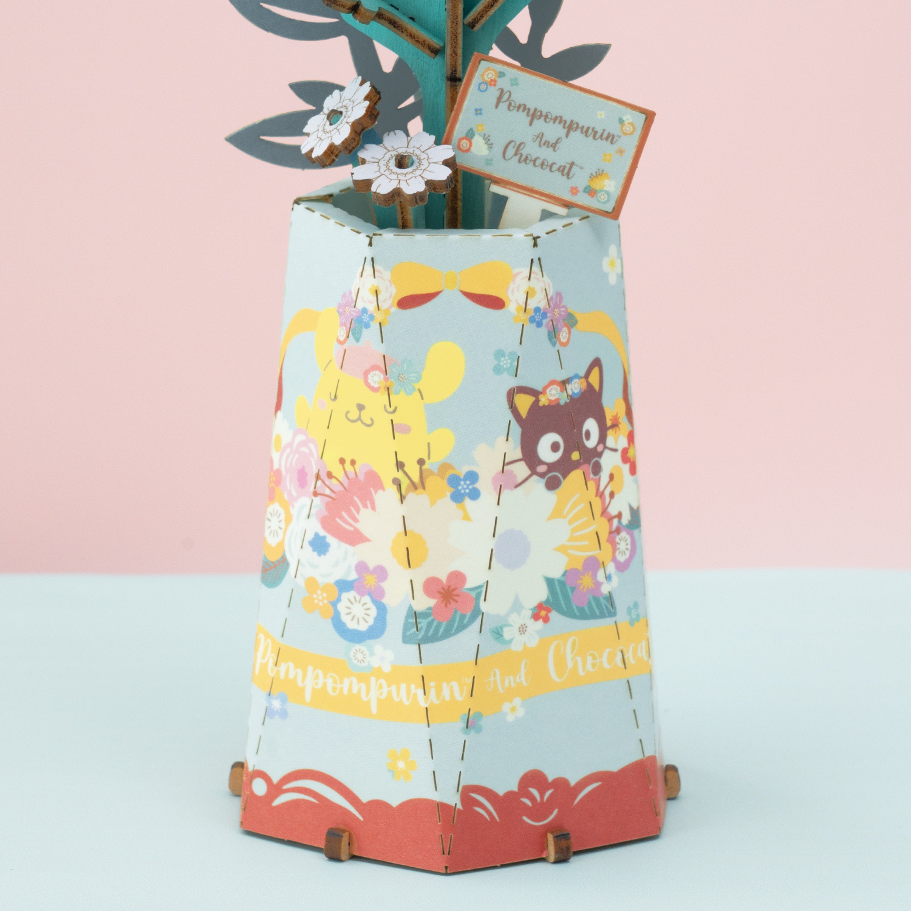 Unleash your creativity with the Pompompurin & Chococat Chamomile 3D Wooden Puzzle Kit. This delightful kit lets you build a charming chamomile flower featuring the iconic Sanrio characters, offering a fun and satisfying challenge for ages 8 and up.